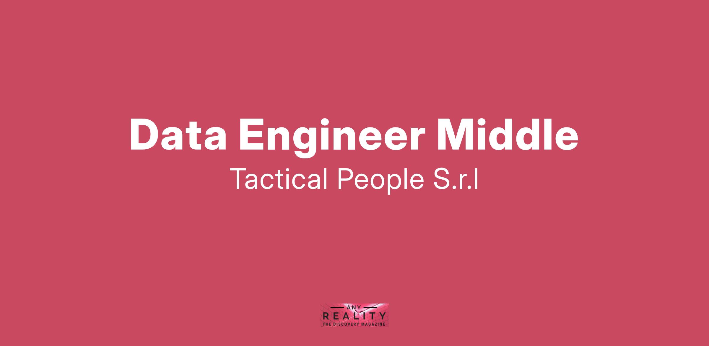 Unisciti a TACTICAL PEOPLE: Innovazione, Persone e Crescita nel Cuore della Digital Transformation Da oltre 20 anni, TACTICAL PEOPLE si posiziona come leader nel mercato ICT, guidando con passione e competenza i nostri clienti di medie e grandi dimensioni attraverso il dinamico percorso della digital transformation. La nostra mission è chiara: non solo abbracciare il cambiamento tecnologico, ma guidarlo, creando soluzioni all'avanguardia che plasmino il futuro digitale. In TACTICAL PEOPLE, crediamo fortemente nel mettere le persone al centro di ogni nostra iniziativa. Le persone sono il cuore pulsante della nostra azienda; il loro benessere, la loro crescita e il loro sviluppo sono la nostra priorità. Ci impegniamo a condividere le strategie aziendali con trasparenza e a fornire formazione e supporto a ogni livello, garantendo che ogni membro del team sia equipaggiato per eccellere e innovare. Stiamo cercando individui che condividano la nostra visione, che siano guidati dalla passione per la tecnologia e che desiderino essere protagonisti nella costruzione di un futuro digitale più luminoso. Se sei pronto a far parte di una squadra che valorizza il talento, incoraggia la crescita personale e professionale e lavora in prima linea nel settore della digital transformation, TACTICAL PEOPLE è il posto giusto per te. Posizione Aperta: Data Engineer Middle Sede: Remoto Descrizione del ruolo: il candidato ideale deve almeno avere 4 anni in ruoli di Data Engineering. Cosa offriamo: Inserimento immediato in una Tech Community giovane e dinamica. TACTICAL LEARNING HUB, con corsi di aggiornamento e formazione. Il presente annuncio è rivolto ad entrambi i sessi, ai sensi delle leggi 903/77 e 125/91, e a persone di tutte le età e tutte le nazionalità, ai sensi dei decreti legislativi 215/03 e 216/03. I curricula dovranno pervenire completi di dicitura che autorizza il trattamento dei propri dati: “Si autorizza al trattamento dei dati personali ai sensi del D. Lgs. 196/2003.