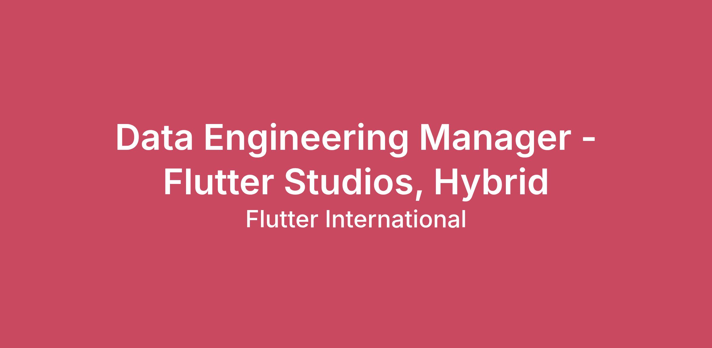 Data Engineering Manager - Flutter Studios, Hybrid