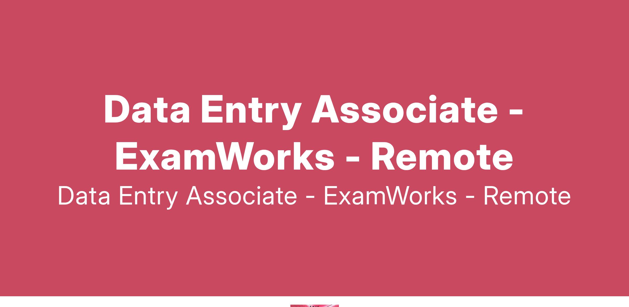 ExamWorks is seeking a Data Entry Associate who is responsible to gather, prepare and enter alphabetic and numeric data from various source documents into the appropriate computer system for storage, processing and data management purposes. Experience with medical bills/records, ICD and CPT codes preferred.