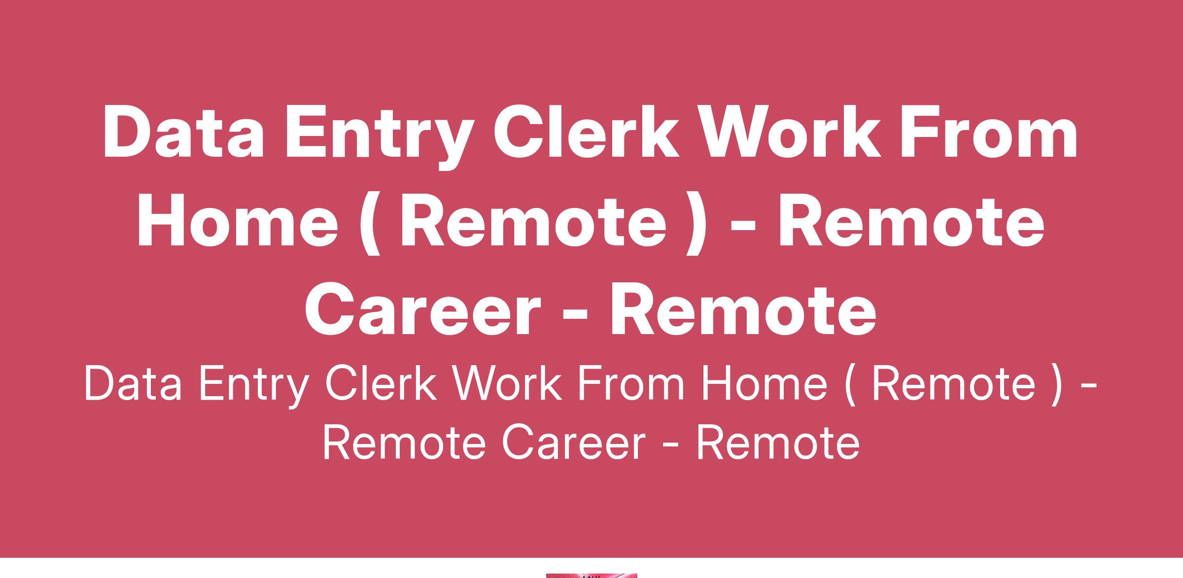 Data Entry Clerk Work From Home ( Remote )