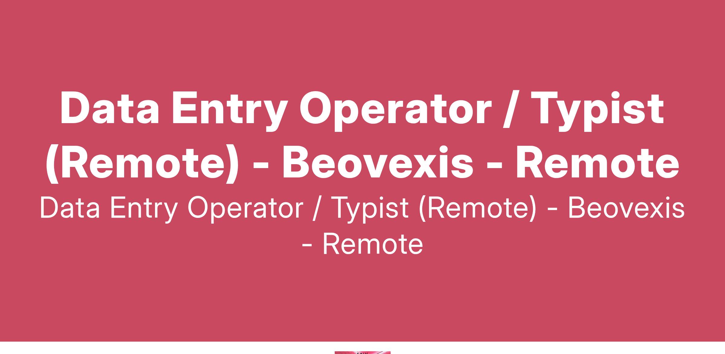 About The Job Data Entry Operator / Typist (Remote)