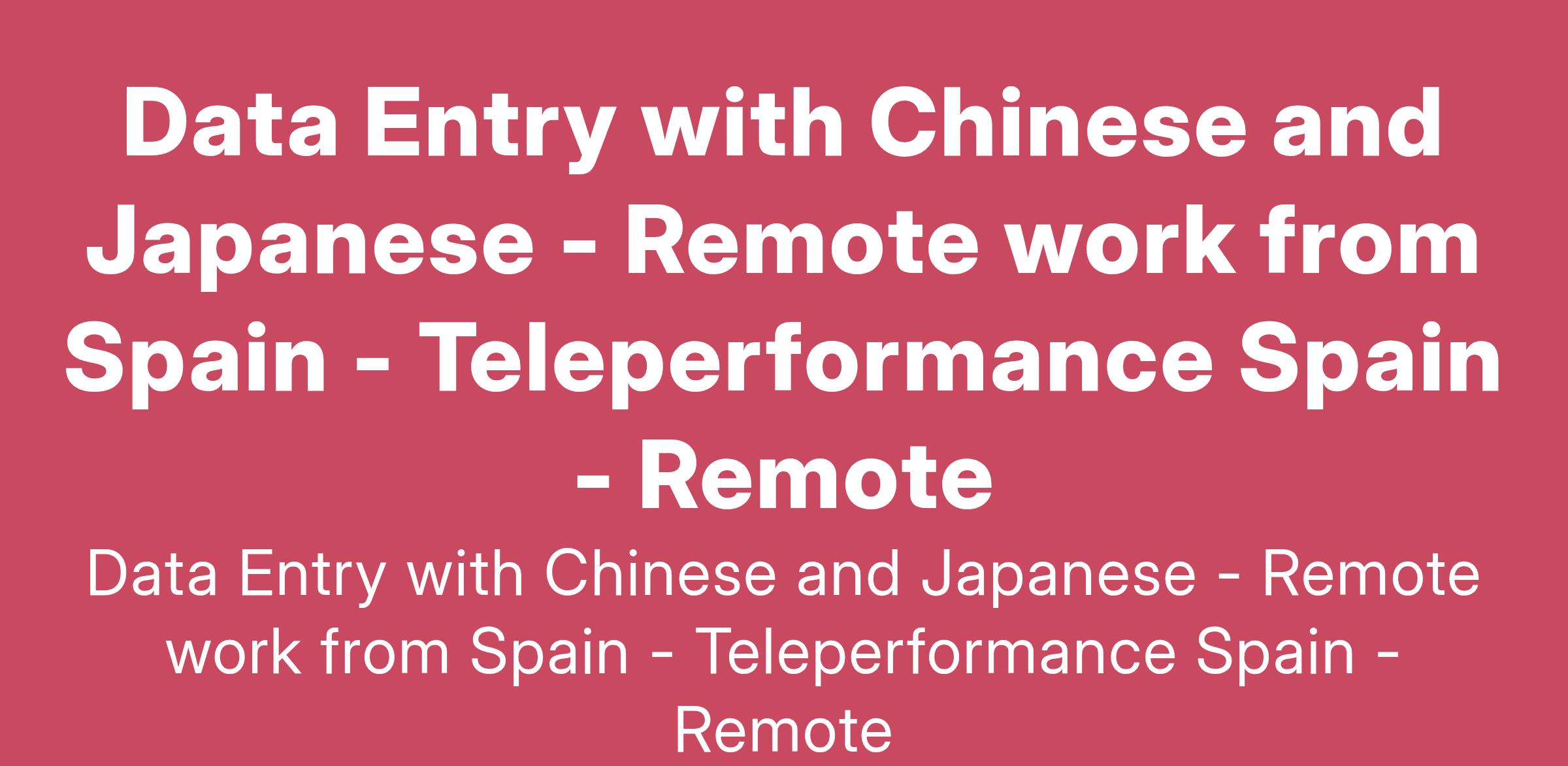Data Entry with Chinese and Japanese - Remote work from Spain - Teleperformance Spain - Remote