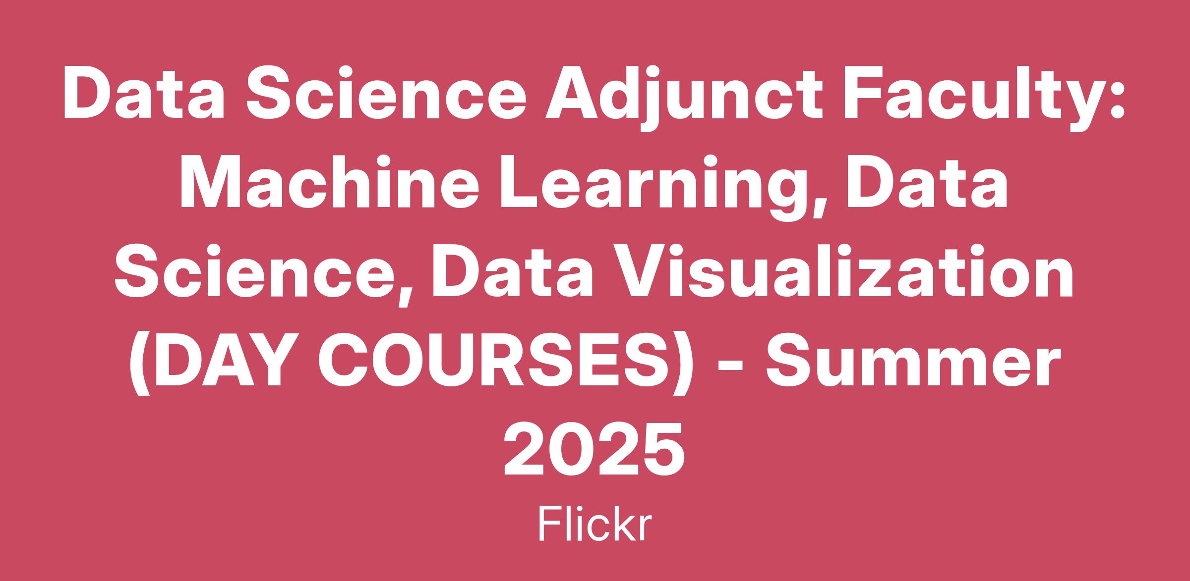 Data Science Adjunct Faculty: Machine Learning, Data Science, Data Visualization (DAY COURSES) - Summer 2025