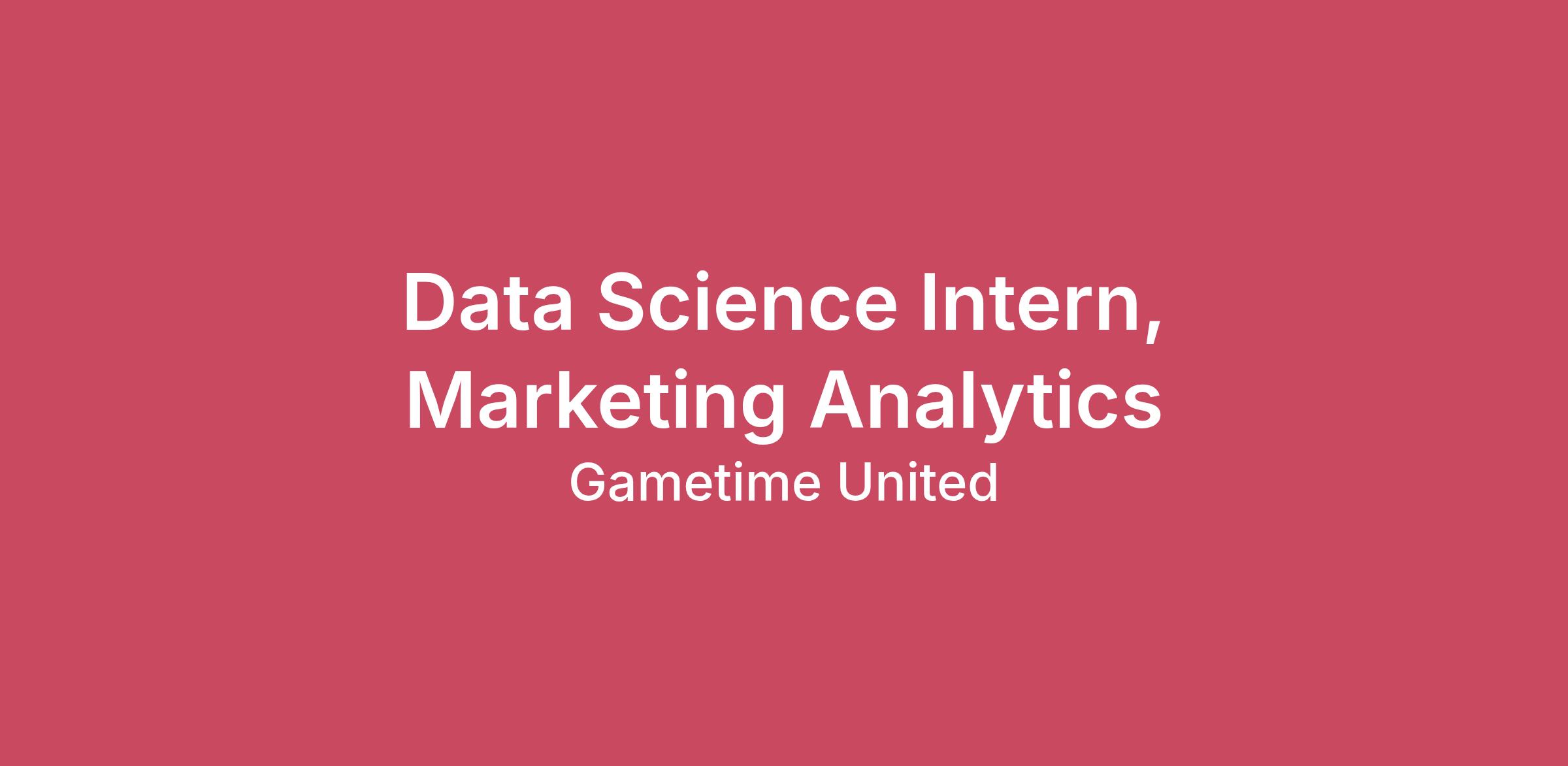 About Us: Live experiences help people cross today’s digital divide and focus on what truly connects us – the here, the now, this once-in-a-lifetime moment that’s bringing us together. To fulfill Gametime’s mission of uniting the world through shared experiences, we make it easy for people to discover and access the live experiences that matter most. With platforms on iOS, Android, mobile web and desktop supporting more than 60,000 events across the US and Canada, we are reimagining the event ticket industry in order to move at the speed of life.The Role: We're seeking a curious and motivated Marketing Analytics Intern to join our dynamic Growth Engine team. This role will focus on understanding and optimizing marketing channel efficiency and analyzing the complete user lifecycle. You will assist in developing frameworks to track and measure marketing effectiveness, ensuring a holistic view of our user base. This role involves leveraging various analytics tools and techniques to dive into user growth, user behavior patterns, the user journey, user retention, and marketing attribution. The ideal candidate has a strong analytical foundation, a passion for marketing analytics, and can thrive in a proactive, results-driven, fast-paced environment. Your work will directly support our marketing strategies, campaign optimization, and customer acquisition efforts. Key Responsibilities: Marketing Attribution & User Journey: Assist in developing and maintaining frameworks to attribute marketing efforts and track customer journeys, user growth, and retention across various channels. Data Analysis: Analyze marketing and user behavior data to identify trends, insights, patterns, and areas for improvement. Tracking & Reporting: Support the management of tracking systems and help generate comprehensive reports on marketing performance and user retention. Cross-Functional Collaboration: Work closely with marketing, product, and data teams to align analytics efforts with overall business growth goals. Performance Optimization: Provide data-backed recommendations for marketing timing, channel optimization, and user engagement. Campaign Reporting: Help deliver detailed reporting on campaign effectiveness, organic/paid channel performance, and key metrics. Industry Trends: Stay up-to-date on industry best practices and emerging marketing analytics techniques. Key Competencies: Technical Skills: Marketing Analytics: Foundational knowledge of marketing attribution, the user journey, and data analysis. Data Management: Capable of working with data sets and ensuring data accuracy. Programming & Tools: Familiarity with Python/R and SQL for data analysis and optimization workflows. Business Intelligence: Exposure to business intelligence data visualization software, such as Tableau, Power BI, or Sigma. Interpersonal Skills: Collaboration: Ability to work cross-functionally with various teams to achieve business goals. Communication: Clear and effective communication skills for presenting data findings. Problem Solving: Analytical Thinking: Demonstrates strong critical thinking and a data-first approach to solving problems. Proactive: Embodies a proactive and “Always be Curious” mindset when exploring data. Minimum Qualifications: Education: Currently pursuing a Bachelor’s or Master's degree in Data Science, Mathematics, Statistics, Computer Science, Marketing Analytics, or a related field. Experience: Previous internship, coursework, or project experience in marketing analytics, data analysis, or a similar domain. Broad understanding of marketing channels is a plus. Tools: Proficiency in SQL and familiarity with Python/R for data analysis. Experience with data visualization tools (e.g., Tableau, Power BI, Sigma). Knowledge: Basic understanding of UTM parameters, marketing tags, and attribution concepts. Preferred Qualifications: Prior exposure to or interest in mobile measurement solutions (e.g., SKAdNetwork/SKAN). Strong academic foundation in statistics, with an understanding of A/B testing, performance metrics, and predictive analytics. At Gametime pay ranges are subject to change and assigned to a job based on specific market median of similar jobs according to 3rd party salary benchmark surveys. Individual pay within that range can vary for several reasons including skills/capabilities, experience, and available budget.United States - Pay Range$25—$30 USDGametime is committed to bringing together individuals from different backgrounds and perspectives. We strive to create an inclusive environment where everyone can thrive, feel a sense of belonging, and do great work together. As an equal opportunity employer, we prohibit any unlawful discrimination against a job applicant on the basis of their race, color, religion, veteran status, sex, parental status, gender identity or expression, transgender status, sexual orientation, national origin, age, disability or genetic information. We respect the laws enforced by the EEOC and are dedicated to going above and beyond in fostering diversity across our company.