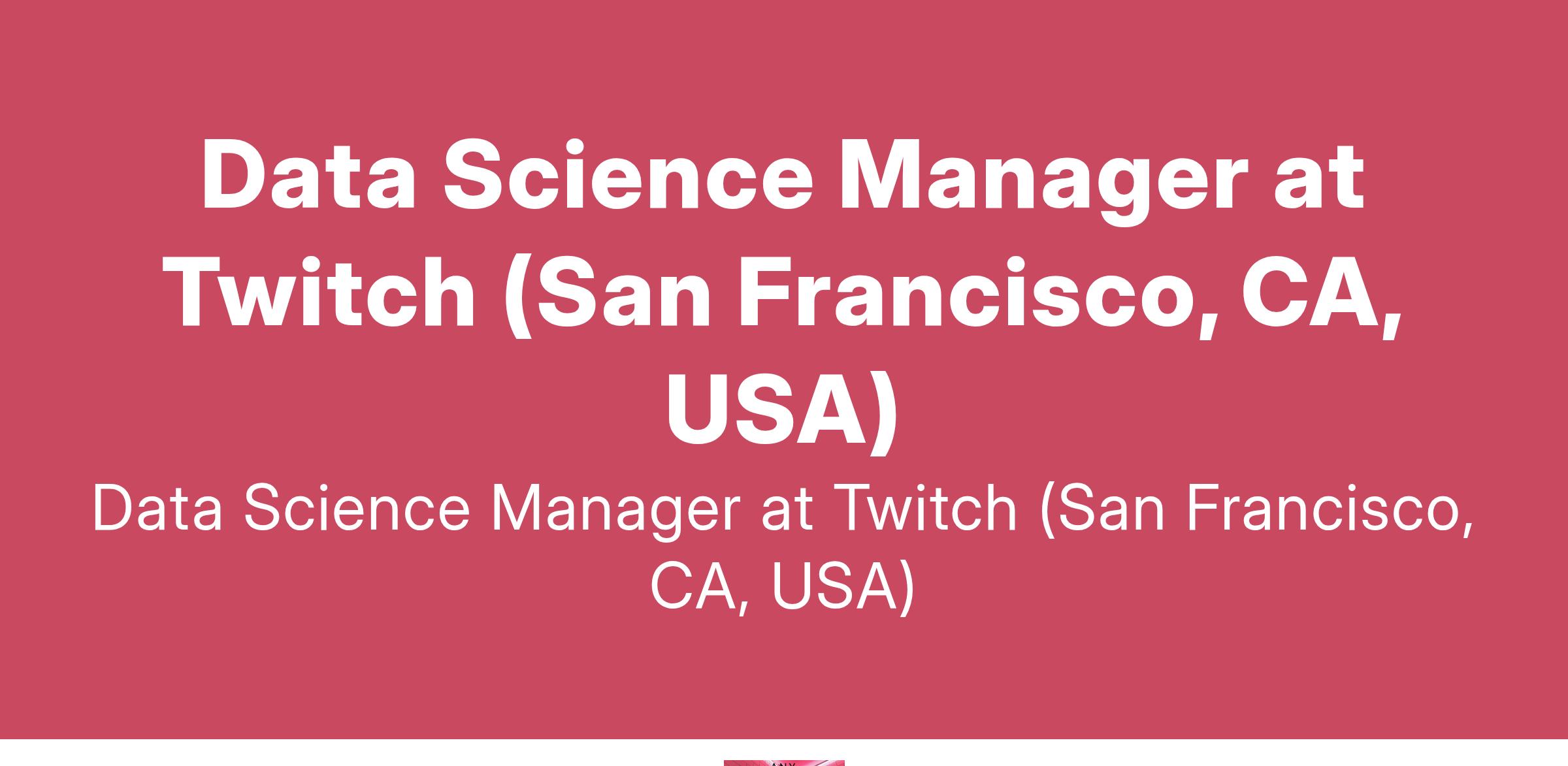 Data Science Manager at Twitch (San Francisco, CA, USA)