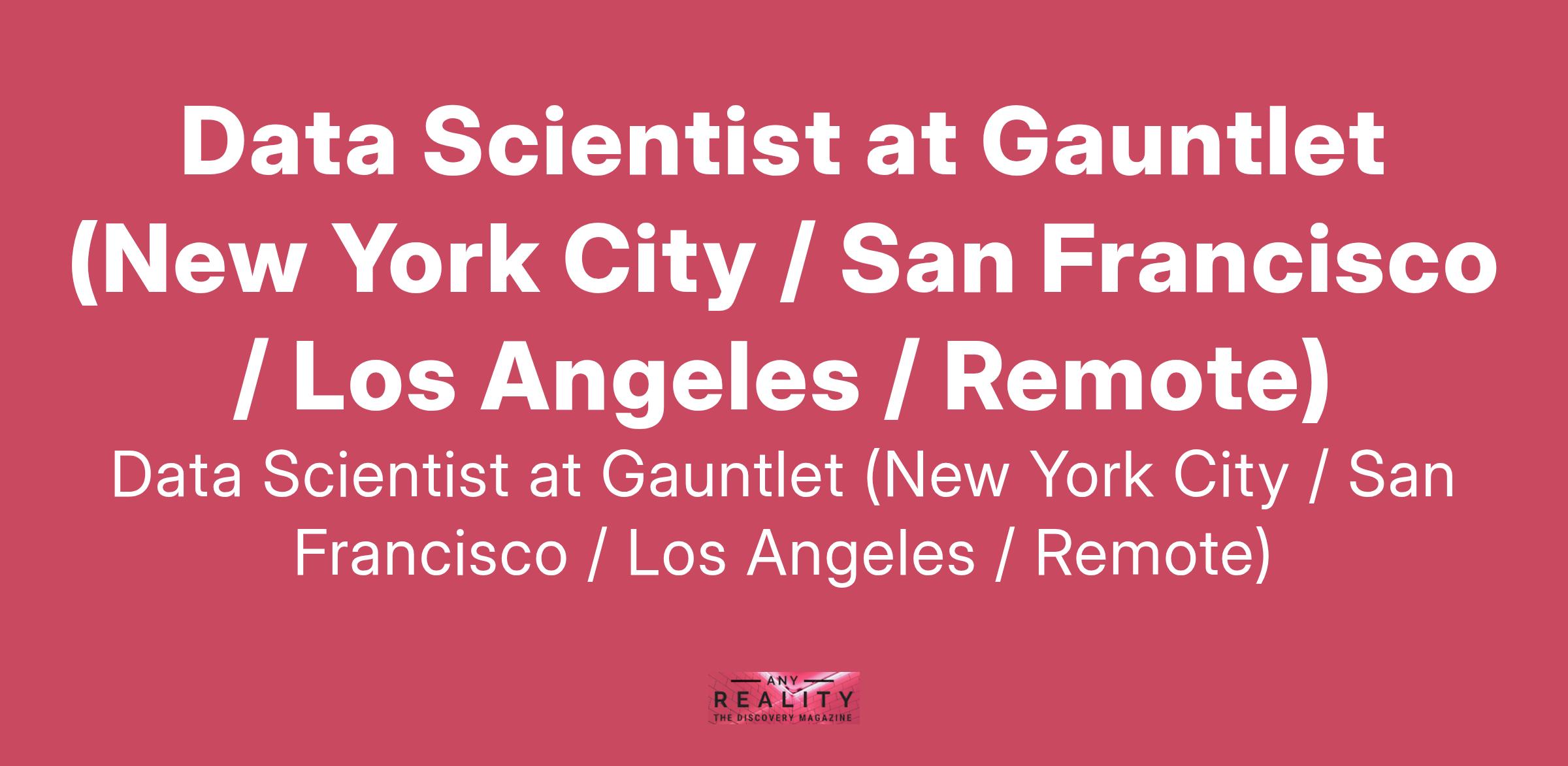 Data Scientist at Gauntlet (New York City / San Francisco / Los Angeles / Remote)