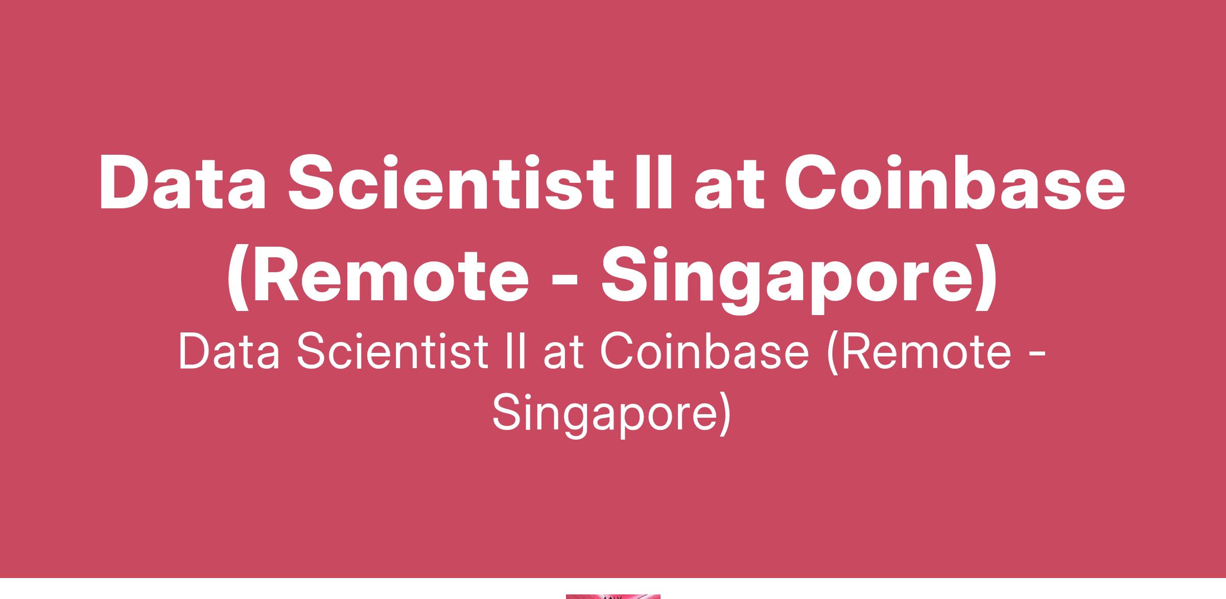 Data Scientist II at Coinbase (Remote - Singapore)