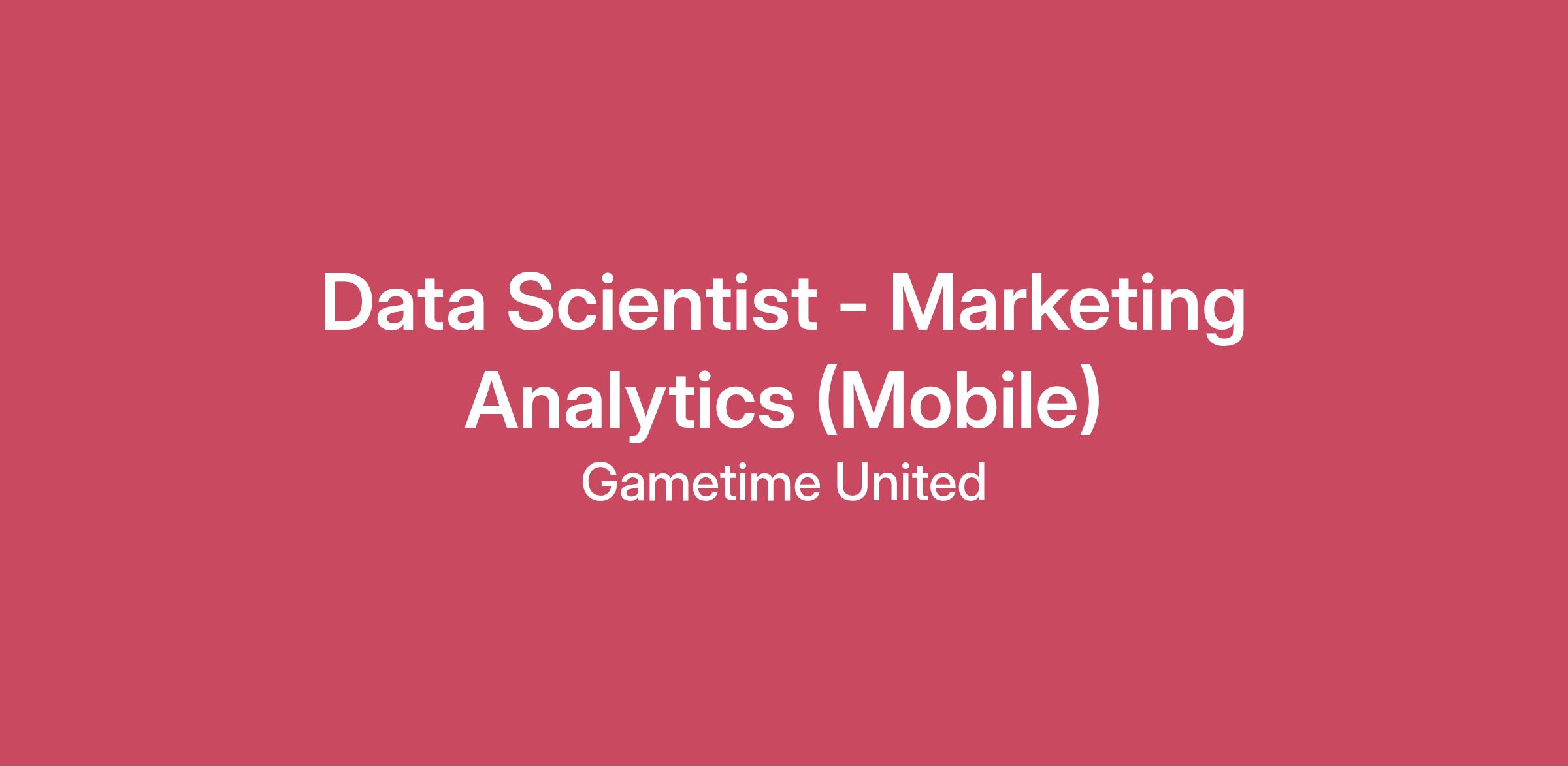 About Us: Live experiences help people cross today’s digital divide and focus on what truly connects us – the here, the now, this once-in-a-lifetime moment that’s bringing us together. To fulfill Gametime’s mission of uniting the world through shared experiences, we make it easy for people to discover and access the live experiences that matter most. With platforms on iOS, Android, mobile web and desktop supporting more than 60,000 events across the US and Canada, we are reimagining the event ticket industry in order to move at the speed of life.The Role We are looking for an experienced Data Scientist to join our team, a cross-functional group supporting all aspects of Gametime. In this role, you will collaborate closely with the User Acquisition team to optimize Paid Social campaign performance across channels like Meta, TikTok, and Reddit through rigorous experimentation and advanced mobile measurement. This includes driving creative and spend efficiency, analyzing channel efficiency dynamics (IPM and CPM), and maximizing signal quality via SKAdNetwork (SKAN). You will play a key role in studying mobile cohorts to identify high-value opportunities across leagues and performers, working towards maximizing Customer Lifetime Value (LTV) and sustainable growth. By supporting the marketing team and optimizing the full user journey, you will have a direct impact on the success of the company. The ideal candidate has hands-on experience with mobile marketing and privacy-compliant measurement in a marketplace setting, and can thrive in a fast-paced, proactive, and dynamic environment. Key Responsibilities Mobile Measurement: Own the technical frameworks for tracking marketing effectiveness in a privacy-first world. You will configure and optimize SKAdNetwork conversion value schemas to extract maximum signal from iOS campaigns, bridging the gap between platform data and internal truth. Reporting & Visualization: Own the end-to-end design and maintenance of marketing analytics dashboards in our BI tools (Sigma/Tableau). You will serve as the single source of truth for reporting, ensuring stakeholders have accurate, real-time visibility into performance. Campaign and Creative Performance: Conduct granular analysis on campaigns and creative performance, specifically monitoring Install Per Mille (IPM) and Cost Per Mille (CPM). You will provide data-driven recommendations to optimize the marketing spend portfolio across many leagues, performances, and creative types. Cohort Analytics: Deeply analyze mobile user cohorts to understand retention and monetization behaviors. You will identify efficiency trends across specific leagues, teams, and performers, guiding budget allocation to capitalize on high-intent users. Financial Modeling & Incrementality: Collaborate with marketing and finance team members to understand channel incrementality (lift) through measurement and experimentation, and inform financial scenario planning and target setting. Competitive Advantage: Stay informed on the evolving mobile privacy landscape (Apple ATT) to help maintain data science as a competitive advantage for the company. Key Competencies Technical Skills Mobile Marketing Expertise: Deep understanding of Mobile Measurement Partners (MMPs), SKAdNetwork, and the optimization algorithms of paid social platforms (Meta, TikTok). Programming and Tooling: Proficient in Python/R and SQL for data analysis, predictive modeling, and optimization workflows. Statistical Analysis: Strong foundation in statistics, with experience in experimentation and incrementality measurement. Business Intelligence: Experience working with business intelligence data visualization software, such as Tableau or Sigma. Interpersonal Skills Collaboration: Ability to work cross-functionally with teams in marketing, supply, finance, product, and fan happiness to achieve business goals. Communication: Clear and concise communication skills to present technical insights (like attribution nuances) to stakeholders, ensuring alignment on strategy. Problem-Solving and Decision-Making Critical Thinking: Demonstrates strong critical thinking and decision-making abilities, especially under pressure. Proactive: Proactive in identifying challenges—such as signal loss or creative fatigue—and implementing solutions. Embodies a proactive and “Always be Curious” mindset. Qualifications Minimum Qualifications: Education: Bachelor’s degree in Data Science, Mathematics, Statistics, Computer Science, or related field. Experience: 5+ years of experience in marketing analytics or growth data science. Mobile-First Expertise: Prior experience in a mobile-first company with a deep understanding of SKAdNetwork (SKAN 4) and other privacy-compliant mobile measurement solutions is required. Tools: Expertise with SQL, Python/R, and Mobile Measurement Partners (Adjust, AppsFlyer, etc.). Preferred Qualifications: Experience with Paid Social (Meta/TikTok) in a dynamic, high-growth marketplace environment. Experience with Marketing Mix Modeling (MMM) or Incrementality testing. Experience in ticketing or live events is a strong plus. Performance Metrics Efficiency Improvement: Improve blended CPI (Cost Per Install) across all channels by 10% at target spend within the first year. User Quality Growth: Improve the Lifetime Value (LTV) of the new user install base by 10% within the first year.At Gametime pay ranges are subject to change and assigned to a job based on specific market median of similar jobs according to 3rd party salary benchmark surveys. Individual pay within that range can vary for several reasons including skills/capabilities, experience, and available budget.United States - Pay Range$169,272—$199,143 USDGametime is committed to bringing together individuals from different backgrounds and perspectives. We strive to create an inclusive environment where everyone can thrive, feel a sense of belonging, and do great work together. As an equal opportunity 