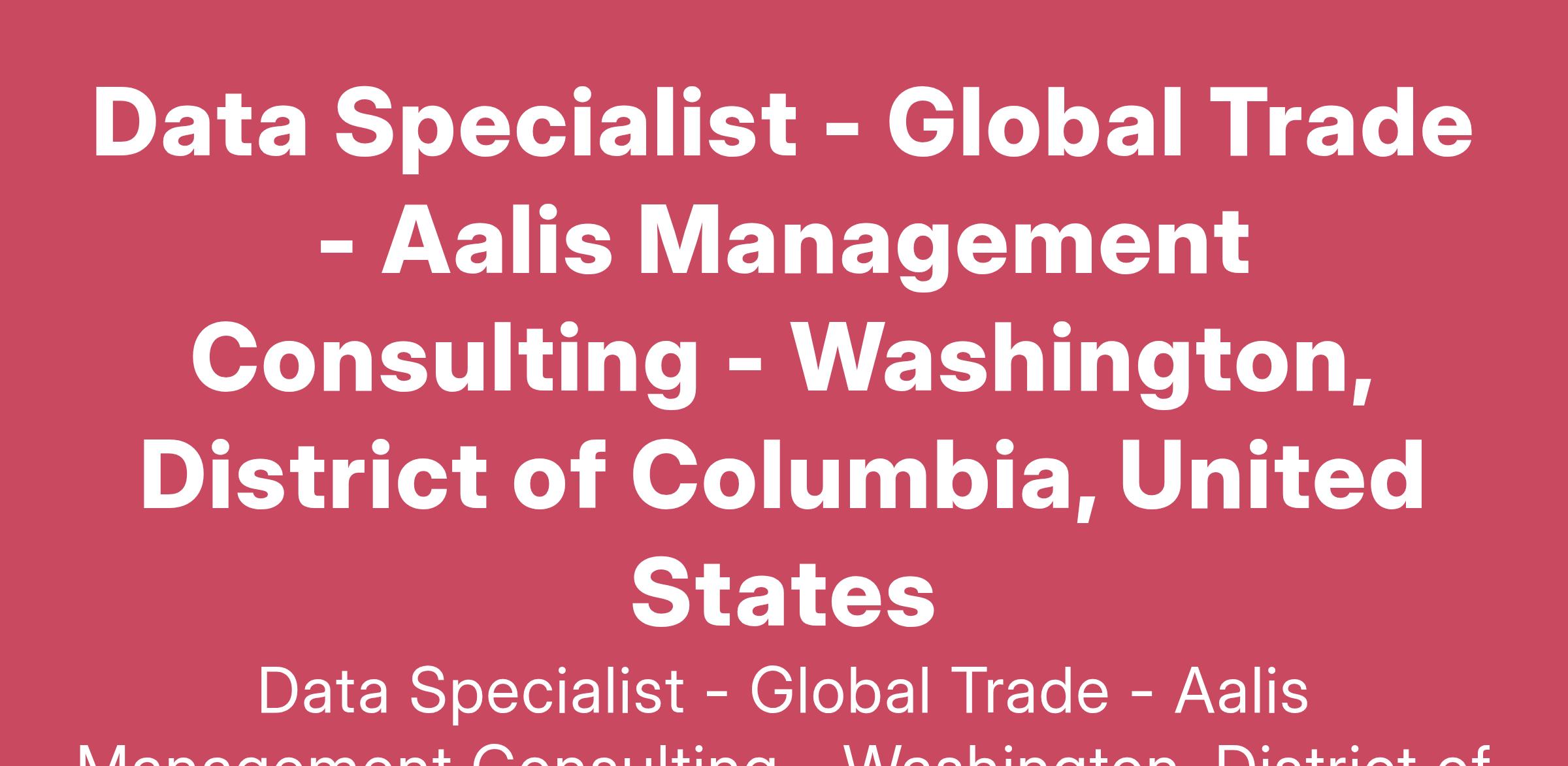 Title: Data Specialist - Global Trade