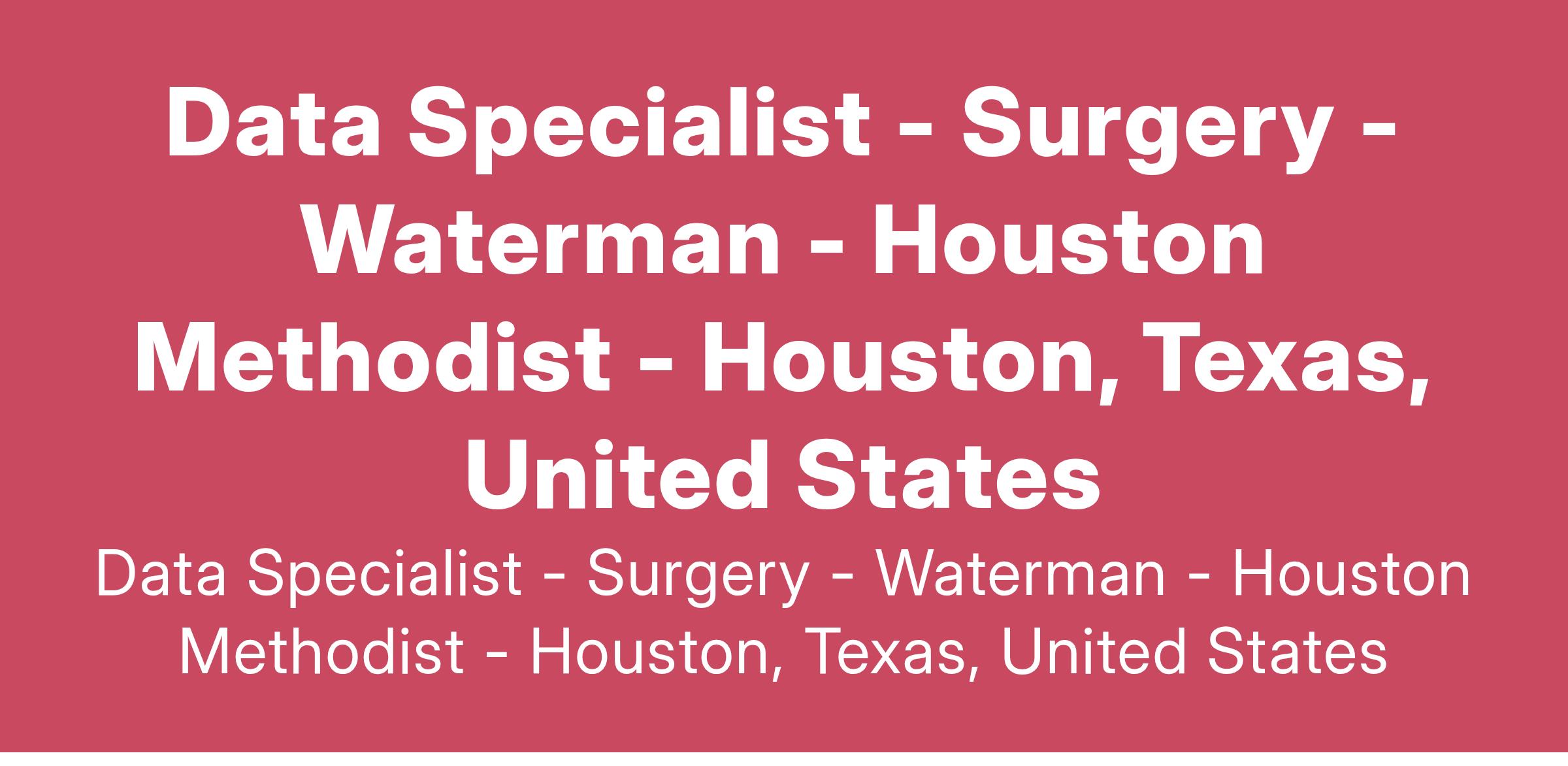 At Houston Methodist, the Data Specialist is responsible for compiling and maintaining various statistical summary data. Additional duties include designing, developing and preparing routine statistical reports as well as responding to requests for information from various data collection systems.
