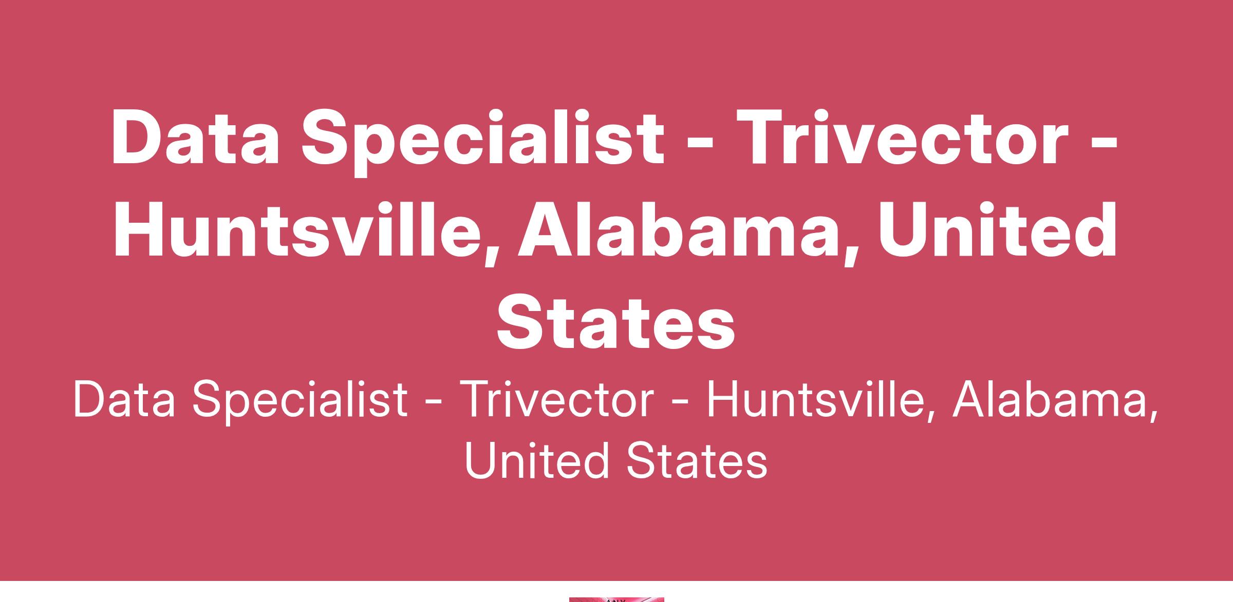 TriVector Services, Inc. provides quality aerospace engineering solutions to complex problems through a renowned team of engineering professionals. We are a Service-Disabled, Veteran-Owned, SBA-certified Small Business headquartered in Huntsville, Alabama. Our experienced team is dedicated to building lasting partnerships based on professional integrity and sound engineering principles. TriVector's Experience and exceptional Performance adds measurable Value to every project. TriVector Services, Inc. is seeking qualified candidates to fill our Data Specialist position.