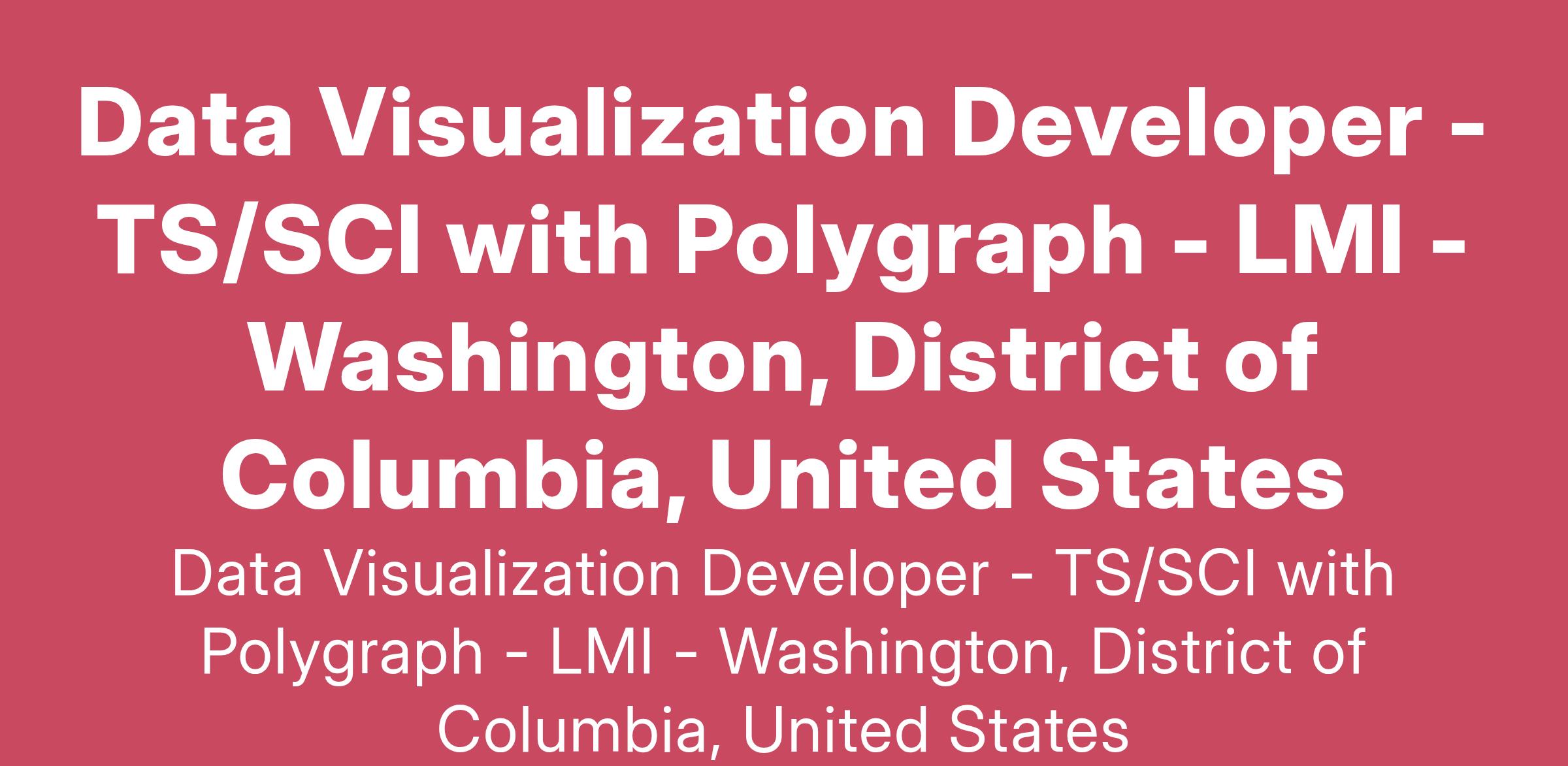LMI is seeking a Data Visualization Developer to support our Intelligence Community client.