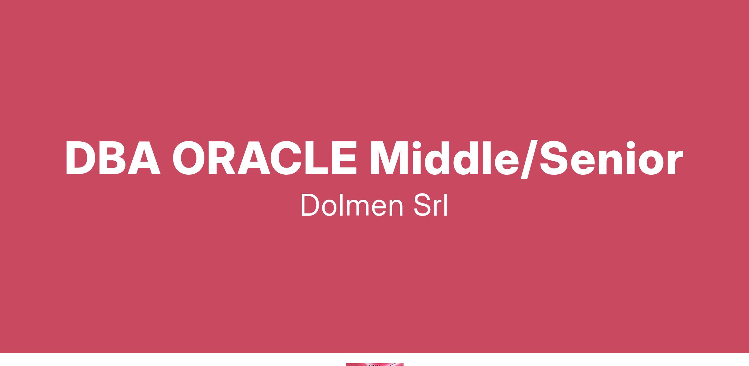 Dolmen S.r.l. società di consulenza informatica e sviluppo software nata da professionisti di decennale esperienza nel settore ICT, cerca per inserimento immediato nel suo organico: DBA ORACLE Middle/Senior Siamo alla ricerca di un DBA ORACLE Middle/Senior con comprovata esperienza nella gestione di database e infrastrutture IT. Il candidato ideale collaborerà con il gruppo sistemistico e con i Capi Progetto, mantenendo un contatto costante con il cliente. Requisiti Obbligatori: • Competenze Database: o Oracle (principalmente) o PostgreSQL o MongoDB • Competenze Sistemistiche Applicative: o Java o Apache Tomcat o Kubernetes • Competenze Sistema Operativo: o Linux basati su Redhat (Oracle Linux, AlmaLinux, RockyLinux, etc.) • Reperibilità: o Disponibilità per reperibilità almeno 5 giorni al mese. Sede e modalità di lavoro: Remoto Completano il profilo: ottime doti relazionali e predisposizione al contatto con il cliente, capacità di lavorare in team, forte orientamento al risultato, flessibilità, entusiasmo nell'affrontare nuove sfide e attitudine all'apprendimento continuo. Invitiamo i candidati interessati a inviare il proprio curriculum vitae in formato Word, dettagliando accuratamente i ruoli ricoperti e le tecnologie utilizzate, completo di autorizzazione al trattamento dei dati personali, all'indirizzo email: Il presente annuncio è rivolto a entrambi i sessi, ai sensi delle leggi 903/77 e 125/91, e a persone di tutte le età e tutte le nazionalità, ai sensi dei decreti legislativi 215/03 e 216/03.