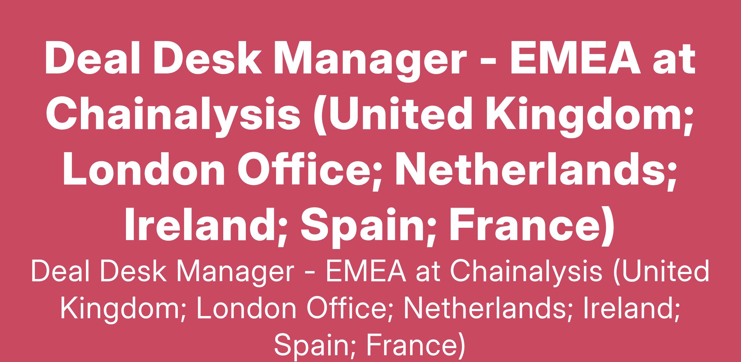 Deal Desk Manager - EMEA at Chainalysis (United Kingdom; London Office; Netherlands; Ireland; Spain; France)