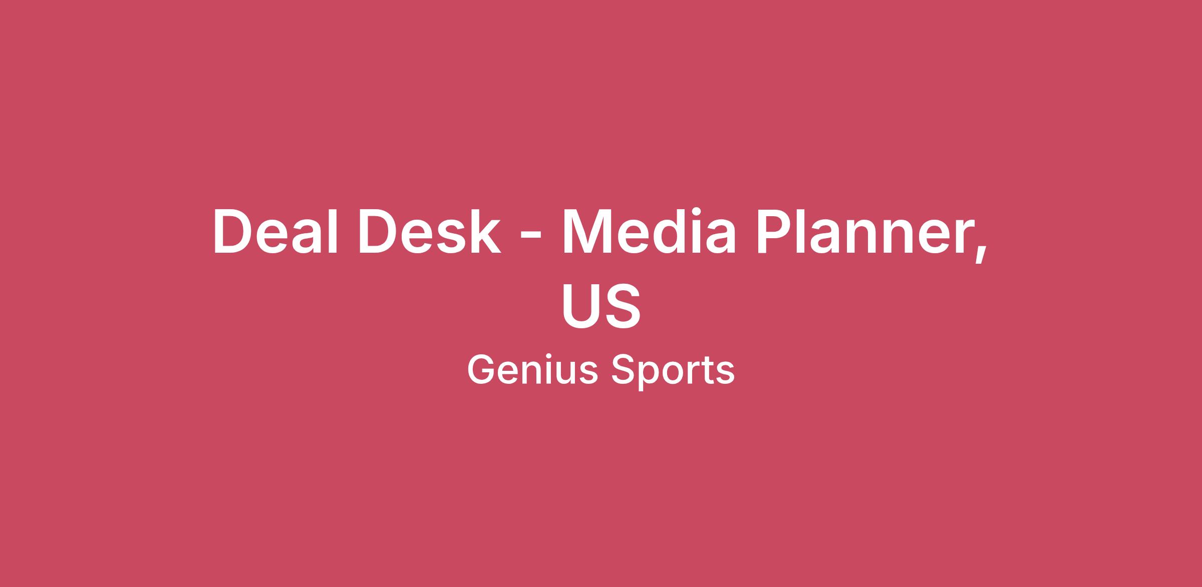 The Deal Desk Media Planner will support Genius Sports’ Deal Desk by managing inbound planning requests, building standardized and custom media packages, and maintaining accurate inventory availability across Always-On and bespoke programs. This role plays a critical function in scaling deal throughput as demand grows - freeing up senior planners to focus on high-value strategy while ensuring consistent, repeatable, and high-quality planning outputs across all inventory and audience products. The Media Planner will be a key contributor to improving speed-to-market, standardization, and revenue efficiency across the sales organization.