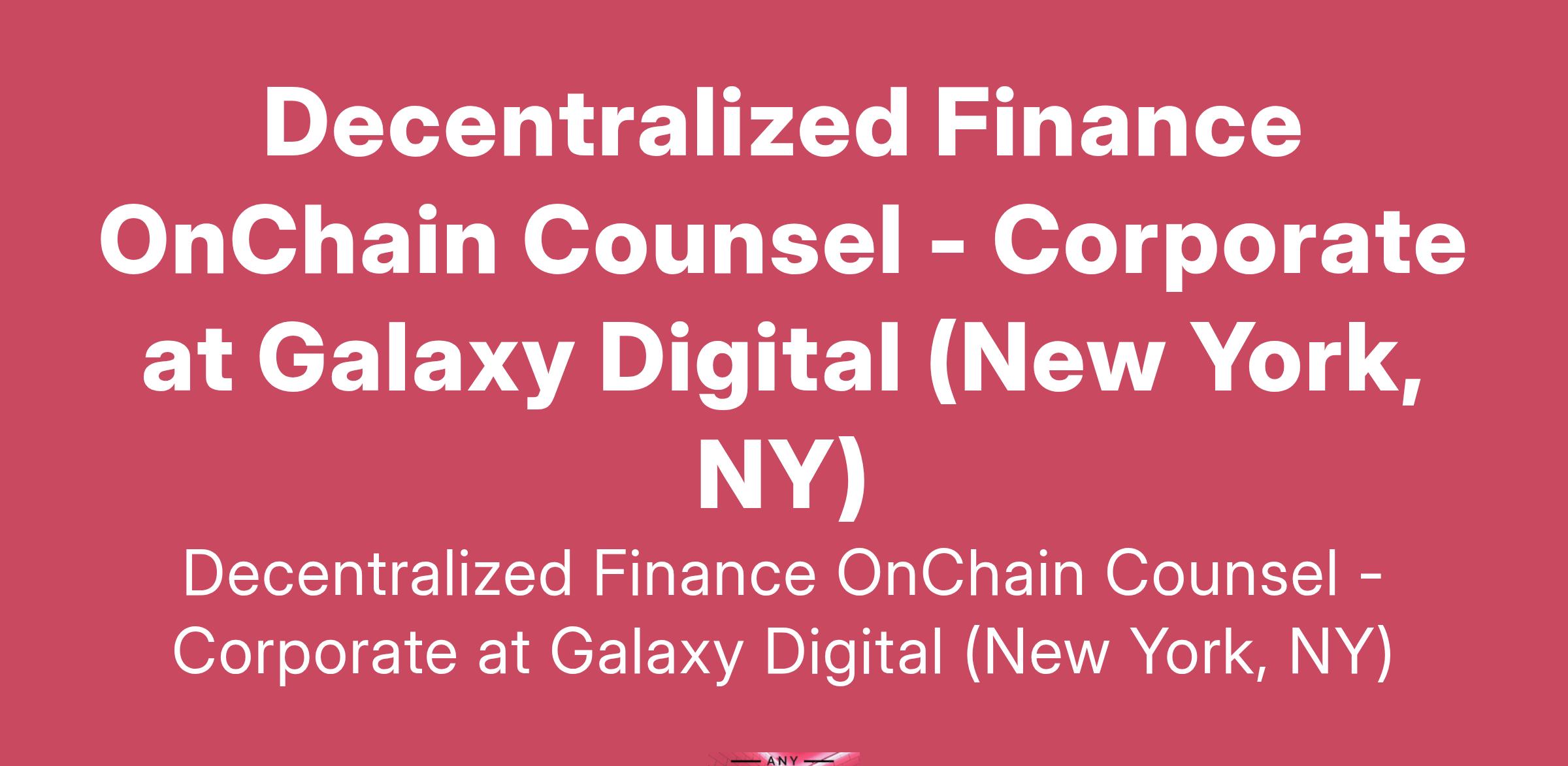 Decentralized Finance OnChain Counsel - Corporate at Galaxy Digital (New York, NY)