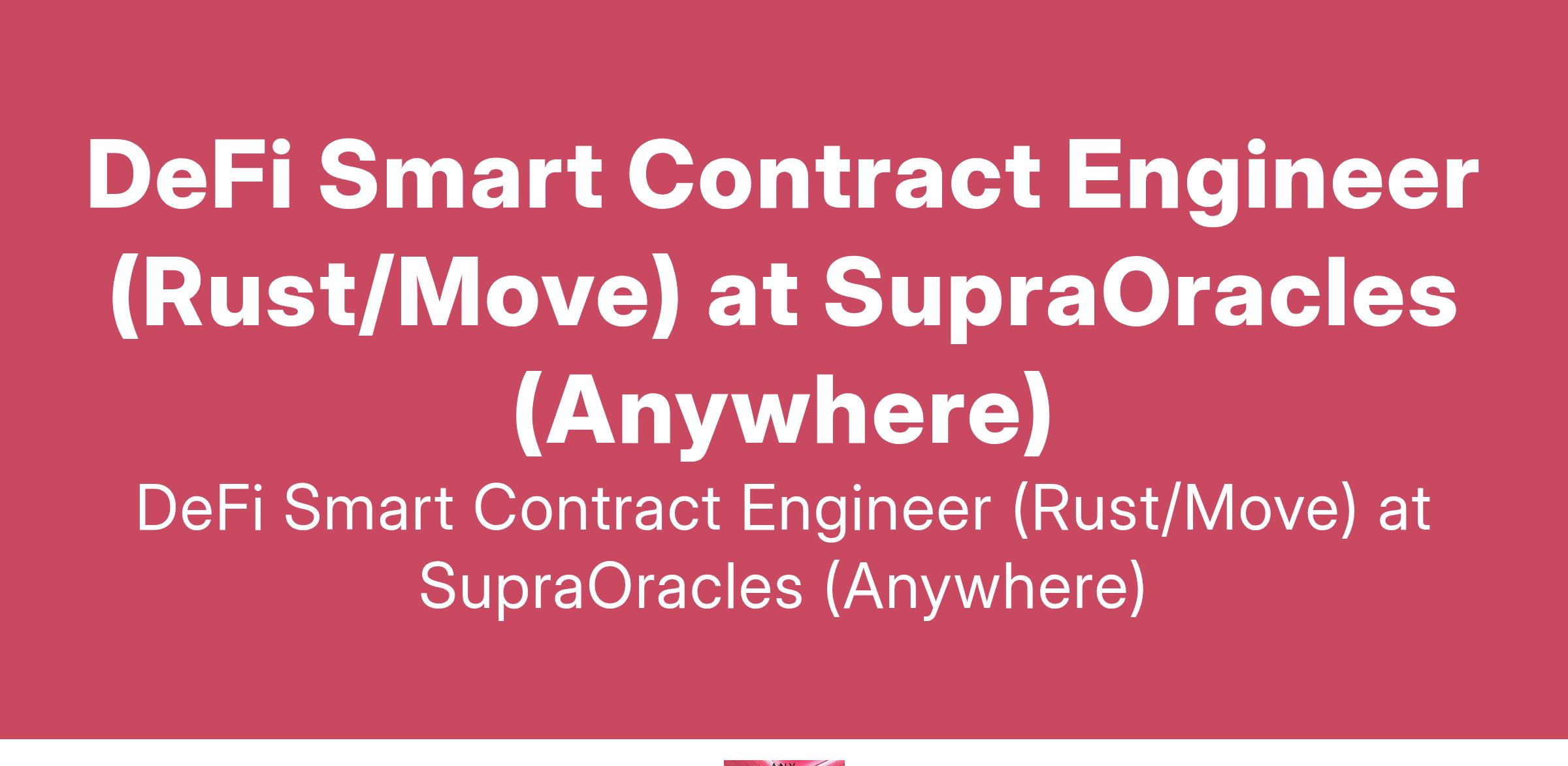 DeFi Smart Contract Engineer (Rust/Move) at SupraOracles (Anywhere)