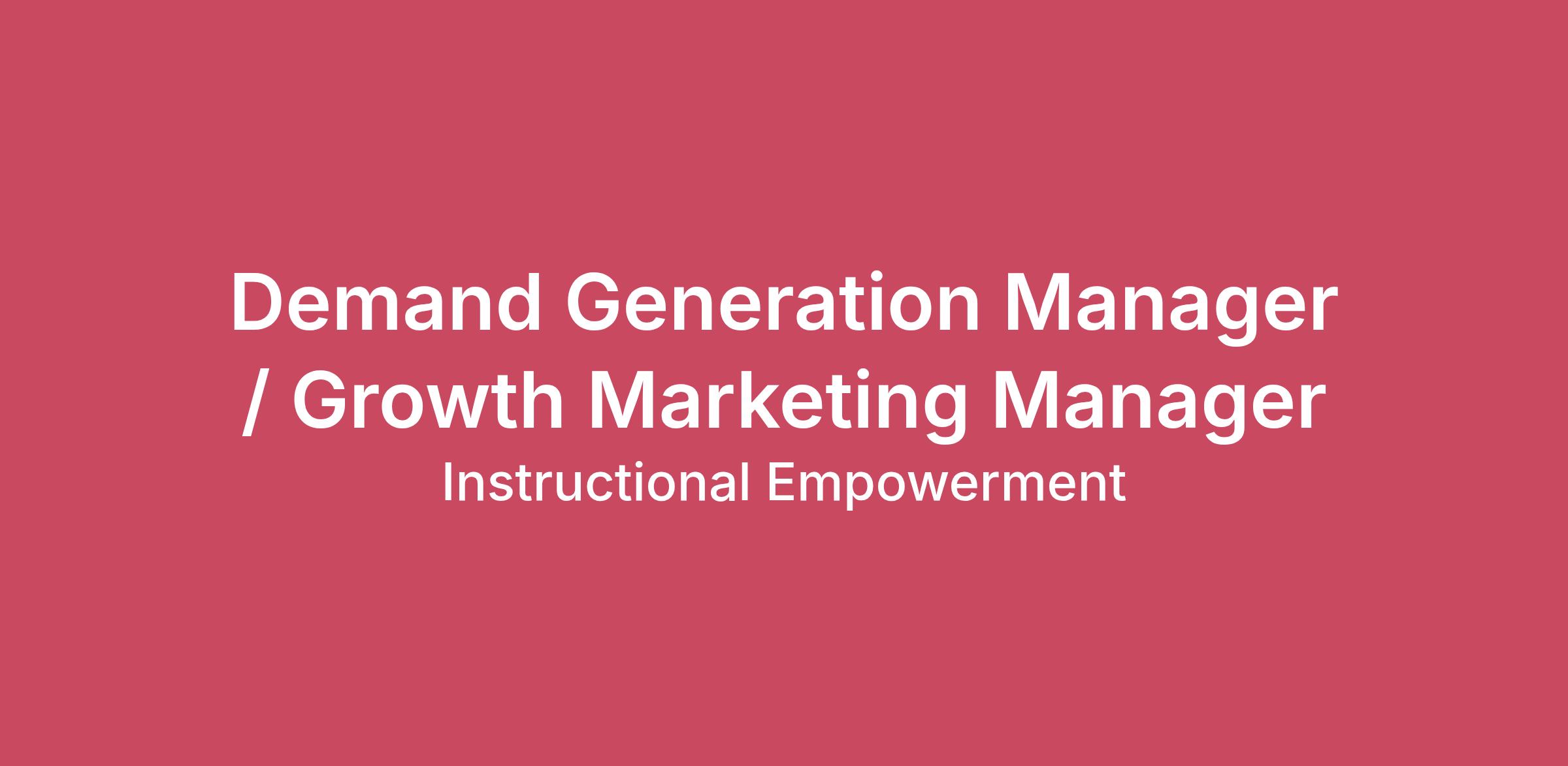 Demand Generation Manager / Growth Marketing ManagerFull-time/remoteMust reside in the Central or Eastern time zoneInstructional Empowerment (IE) is a mission-driven organization dedicated to ending generational poverty and eliminating achievement gaps through rigorous Tier 1 instruction that ensures deeper learning for ALL students.About the RoleWe’re looking for a results-driven Demand Generation / Growth Marketing Manager to turn product lines into effective messaging and go-to-market strategies into qualified leads and revenue opportunities. You’ll manage multi-channel campaigns, optimize the marketing funnel, and measure performance to drive growth.Key ResponsibilitiesPlan and execute campaigns across email, paid ads (LinkedIn, Google), webinars, and eventsBuild and optimize lead-generation funnels and product nurture campaigns to convert prospects into sales opportunitiesTrack, analyze, and report on marketing performance (leads, MQLs, pipeline)Collaborate with Subject Mater Experts (SMEs), sales and leadership to align marketing initiatives with business objectivesEssential Skills & CompetenciesExperience in demand generation, multi-channel campaigns, and funnel optimizationStrong creative skills with the ability to compose effective ad and email copyStrong analytical skills with the ability to measure and improve performanceHands-on experience managing paid digital advertising and email integrated and multiphase campaignsExcellent teamwork, collaboration, and communication skillsEducation & ExperienceRequired:Bachelor’s degree in Marketing, Business, Communications, or related field4–6 years of experience in product marketing, demand generation, growth marketing, or similar rolesExperience in B2B, EdTech, or professional servicesPreferred:K-12 education product marketing experience marketing to school district leadersPaid media campaign and email marketing experienceFamiliarity with lead scoring, funnel optimization, and lifecycle marketingWhat We Offer?At Instructional Empowerment, you’ll be part of a passionate, mission-driven team working to transform K–12 education. We offer a collaborative, inclusive work culture, opportunities for professional growth, and the chance to make a tangible impact on students, schools, and communities.Salary range- $90,000-$100,000Competitive compensation and benefits package100% paid medical/dental/vision/LTD/STD/Life (Employee & Dependents) 15 Days PTO given upfront in your first year8 Paid Holidays + 2 Floating Holidays401K plan - 4% company matchExceptional Onboarding ProcessAnd many more benefitsWant to learn more about Instructional Empowerment?Visit our website at: www.instructionalempowerment.com Follow us on FacebookSee what our employees have to say GlassdoorLike us on InstagramThis is a remote role with approximately 25% travel for events and conferences.EEO StatementInstructional Empowerment provides equal employment opportunity to all individuals regardless of their race, color, creed, religion, age, sex, gender identity or expression, sexual orientation, national origin, disability, veteran status, or any other characteristic protected by state, federal, or local law. This policy applies to all terms and conditions of employment, including recruiting, hiring, placement, promotion, termination, layoff, recall, transfer, leaves of absence, compensation, and training.
