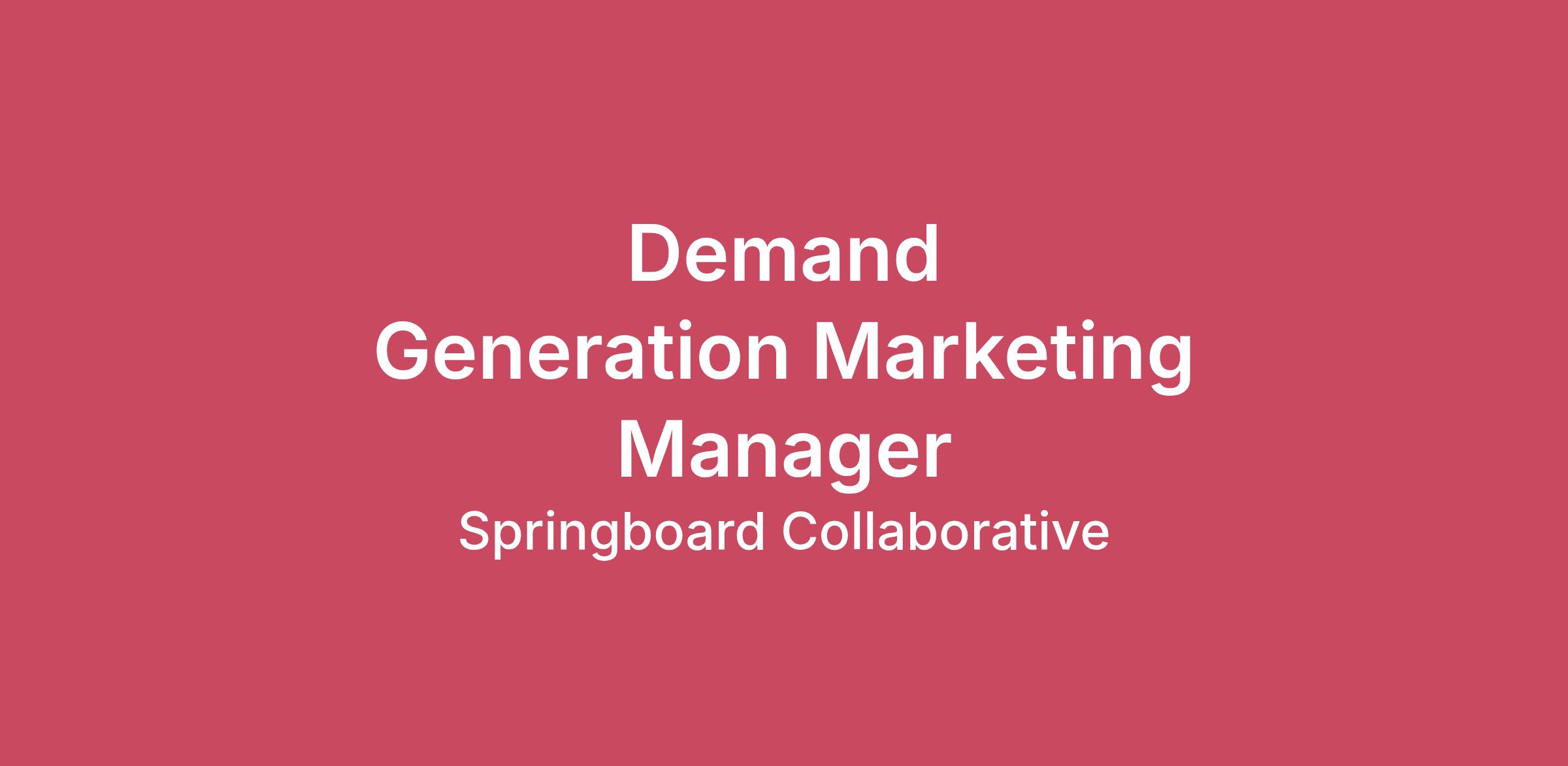 Why we need you Springboard Collaborative invites talented and passionate candidates to apply for the position of Demand Generation Marketing Manager. The Demand Generation Marketing Manager will be responsible for executing on the strategic marketing plan by delivering a robust set of content assets and demand programs to attract, engage, and convert prospective customers through educational, value-driven campaigns grounded in K-12 market insights. A successful candidate will be experienced in using marketing automation technology/CRM systems, digital marketing/multi-channel integration, and marketing content creation/management. This is a remote position, and candidates must reside in the U.S. More information about location and travel can be found below.Springboard Collaborative closes the opportunity gap by closing the gap between home and school. We coach educators and family members to help kids learn to read by 4th grade. Springboard envisions a world in which educators and families work together to help children unlock their full potential. The Demand Generation Marketing Manager supports this goal by driving multi-channel campaigns, crafting targeted content, and aligning with sales to fuel lead generation and pipeline growth. The Demand Generation Marketing Manager will report to the Senior Director, Marketing, and work as part of the Partnerships team. This is a great opportunity to support an entrepreneurial team to maximize the impact of a rapidly growing organization.You can read more about the requirements, competencies, goals, and responsibilities below. We'd love to have you join us!This is importantWe are an equal opportunity employer. Diversity is more than a commitment at Springboard Collaborative—it’s at the core of what we do and how we do it. No one can solve a problem better than those who experience it firsthand. That’s why Springboard aspires to hire a diverse team that is representative of the marginalized communities we serve.We also know that having a diverse workforce makes for a better workplace. Springboard’s hiring process seeks individuals who value diversity of race, gender, sexual orientation, religion, ethnicity, national origin, etc.Finally, if you’re passionate about an open role, we encourage you to apply— even if you don’t meet 100% of the qualifications listed on the job description!Here are your priorities in the first year:You will deliver timely marketing programs to support thought leadership and brand awareness across digital channels and events. You will support the Sales team with regionalized programs that provide relevant assets and content programs across 12-15 primary states. Expand website assets for primary states as a foundation for targeted demand generation.Test 2-3 education media programs to attract high-quality prospects. Deliver content assets to support new brand positioning and value proposition. Here are your responsibilities within and beyond the first year:You will develop and execute a comprehensive demand-generation and content-marketing programs against the annual marketing strategy.Develop and execute integrated demand generation campaigns aligned to quarterly themes that drive qualified leads and pipeline growth.Build and manage multi-channel campaigns (email, paid media, organic social, SEO/SEM, direct mail) targeting superintendents, curriculum directors, principals, and family engagement decision makers.Create and optimize lead nurturing programs and marketing automation workflows in partnership with marketing operations to move prospects through the funnel.Design and manage annual and quarterly demand generation plans with clear KPIs tied to revenue targets, including lead generation goals, conversion rates, and pipeline contribution.Establish evergreen lead generation programs that reduce manual sales follow-up and create scalable growth infrastructure.You will build out engagement and enablement assets to support growth in primary target states.Design and execute 1:few and 1:many programs targeting primary states with customized messaging aligned to state-specific learning mandates, funding opportunities, and family engagement requirements.Create state-specific content assets and sales enablement toolkits, including one-pagers, case studies, email sequences, and presentations that Sales can use in outreach to target districts and schools.Partner with Sales leadership to identify high-priority accounts and develop targeted campaigns with personalized content journeys based on district size, demographics, and challenge areas.Track and report on program performance, including account engagement, pipeline influence, and closed-won revenue by state and district segment.You will steward thought leadership and content development efforts that showcase SBC’s expertise and impact.Align content creation and schedules for webinars, white papers, research reports, and case studies that position SBC as the leader in family engagement for literacy acceleration.Develop compelling messaging and storytelling that connects SBC's Family Engagement methodology to measurable student outcomes and district pain points.Manage and deliver against the content calendar across the website, blog, social media, and email that drives awareness, engagement, and conversions.Organize and assign content development for quarterly webinars and virtual events featuring SBC leaders, district partners, and education researchers to generate leads and establish credibility.Coordinate content & messaging to support SBC's presence at key K-12 conferences and events, including booth strategy, speaking proposals, pre-event outreach, and post-event follow-up.You will manage the performance outcomes of demand gen programs to ensure they meet quarterly goals.Define, track, and report on program KPIs, including lead volume and quality, MQL-to-SQL conversion, campaign ROI, and marketing-sourced pipeline/revenue.Use data insights to continuously 