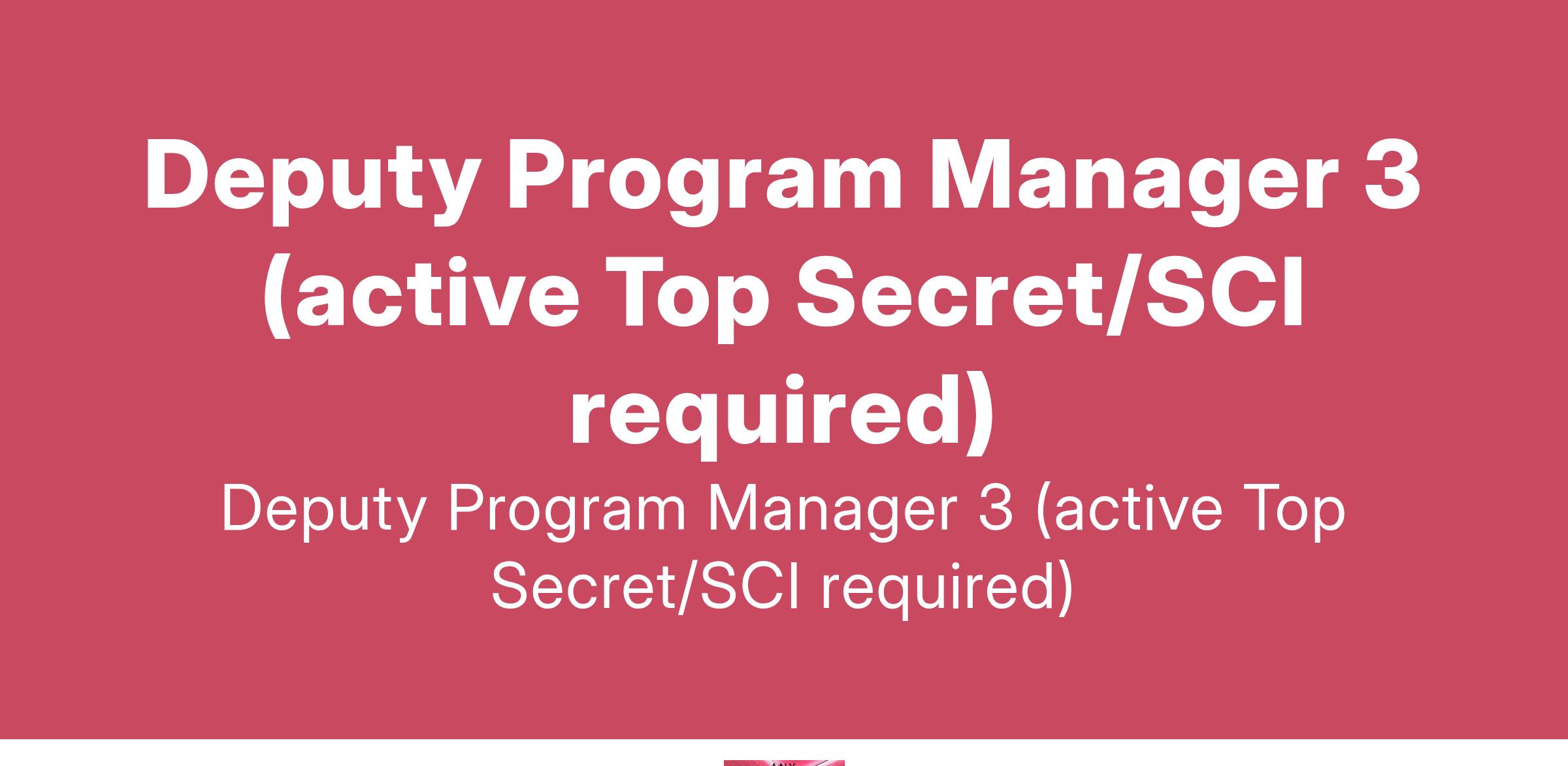 Deputy Program Manager 3 (active Top Secret/SCI required)