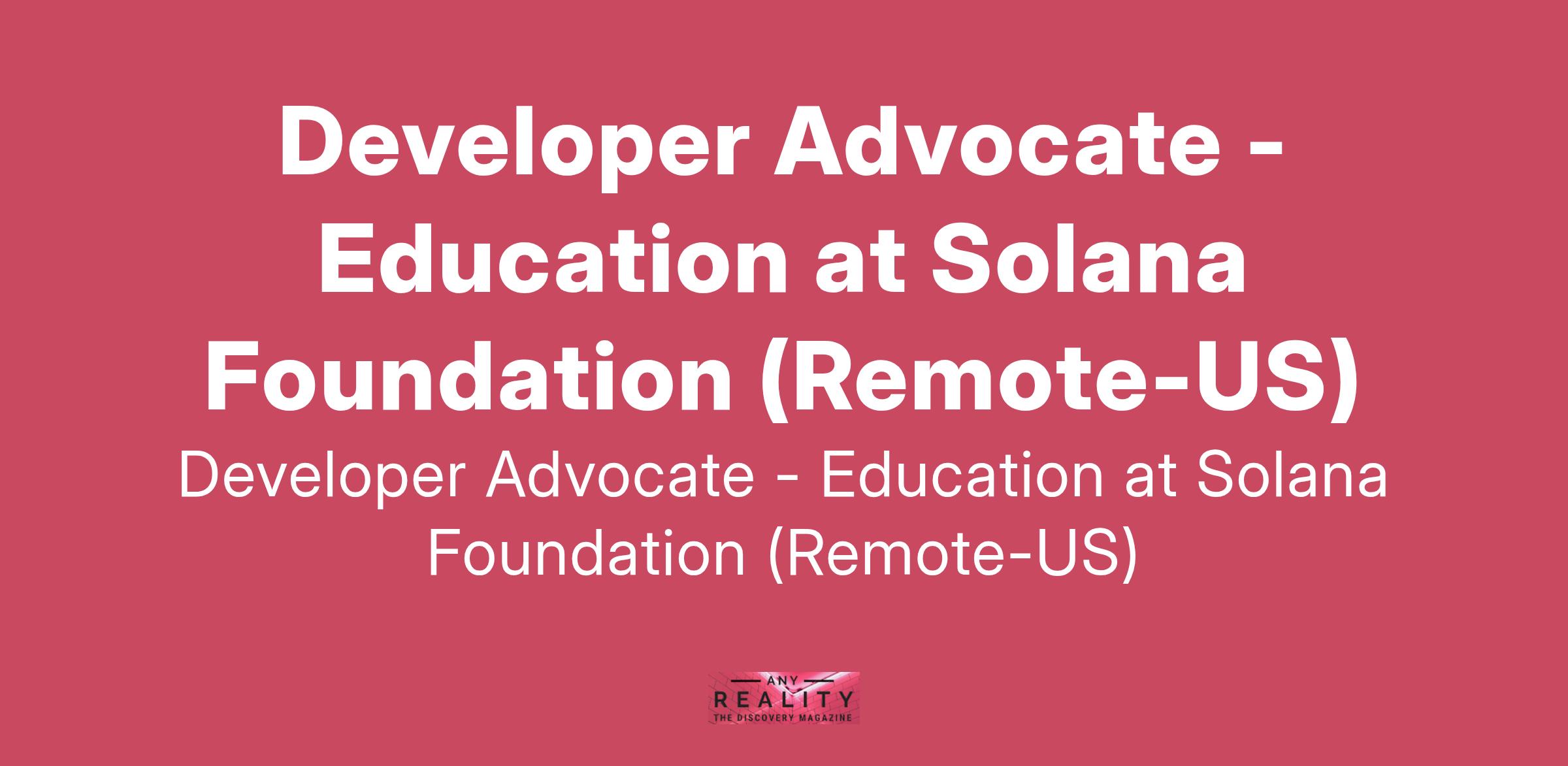Developer Advocate - Education at Solana Foundation (Remote-US)