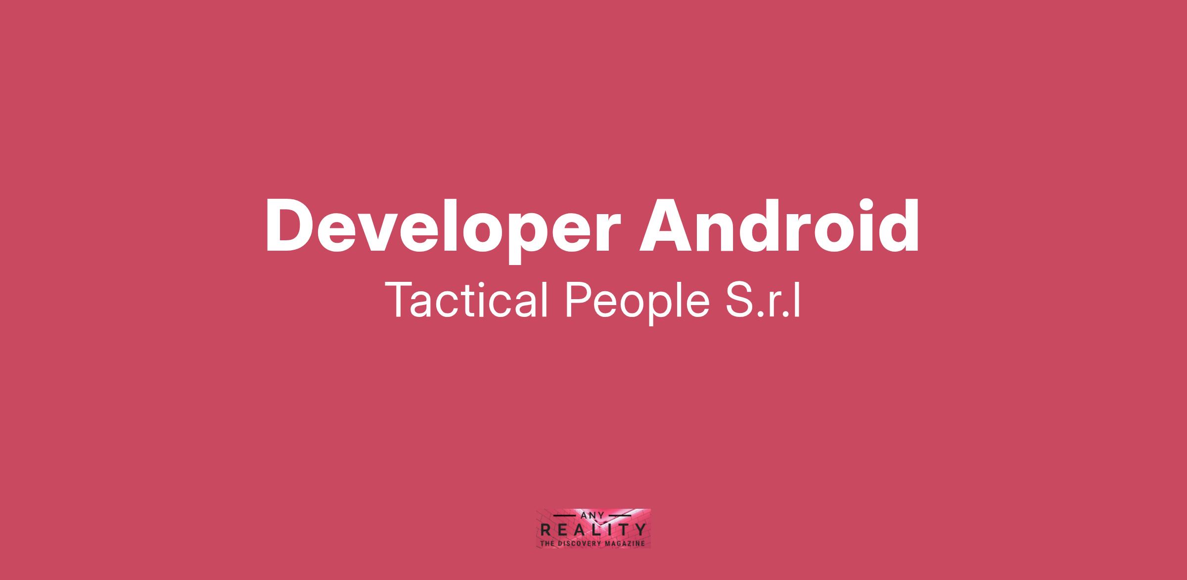 Unisciti a TACTICAL PEOPLE: Innovazione, Persone e Crescita nel Cuore della Digital Transformation Da oltre 20 anni, TACTICAL PEOPLE si posiziona come leader nel mercato ICT, guidando con passione e competenza i nostri clienti di medie e grandi dimensioni attraverso il dinamico percorso della digital transformation. La nostra mission è chiara: non solo abbracciare il cambiamento tecnologico, ma guidarlo, creando soluzioni all'avanguardia che plasmino il futuro digitale. In TACTICAL PEOPLE, crediamo fortemente nel mettere le persone al centro di ogni nostra iniziativa. Le persone sono il cuore pulsante della nostra azienda; il loro benessere, la loro crescita e il loro sviluppo sono la nostra priorità. Ci impegniamo a condividere le strategie aziendali con trasparenza e a fornire formazione e supporto a ogni livello, garantendo che ogni membro del team sia equipaggiato per eccellere e innovare. Stiamo cercando individui che condividano la nostra visione, che siano guidati dalla passione per la tecnologia e che desiderino essere protagonisti nella costruzione di un futuro digitale più luminoso. Se sei pronto a far parte di una squadra che valorizza il talento, incoraggia la crescita personale e professionale e lavora in prima linea nel settore della digital transformation, TACTICAL PEOPLE è il posto giusto per te. Posizione Aperta: Developer Android Sede: remoto con possibilità di trasferta Descrizione del ruolo: Il candidato ideale deve avere minimo 3-5 anni in ambienti professionali. Cosa offriamo: Inserimento immediato in una Tech Community giovane e dinamica. TACTICAL LEARNING HUB, con corsi di aggiornamento e formazione. Il presente annuncio è rivolto ad entrambi i sessi, ai sensi delle leggi 903/77 e 125/91, e a persone di tutte le età e tutte le nazionalità, ai sensi dei decreti legislativi 215/03 e 216/03. I curricula dovranno pervenire completi di dicitura che autorizza il trattamento dei propri dati: “Si autorizza al trattamento dei dati personali ai sensi del D. Lgs. 196/2003.