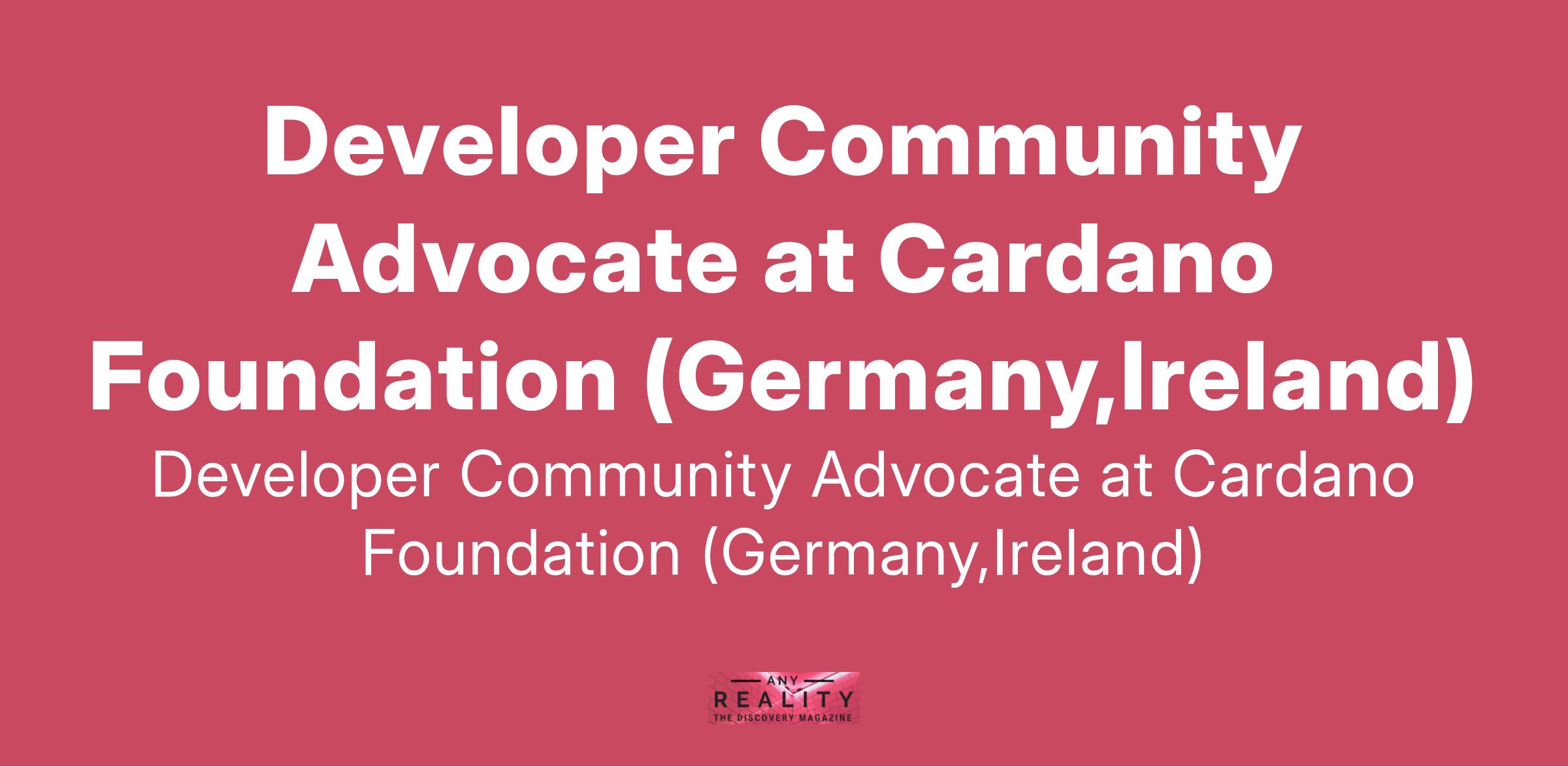 Developer Community Advocate at Cardano Foundation (Germany,Ireland)