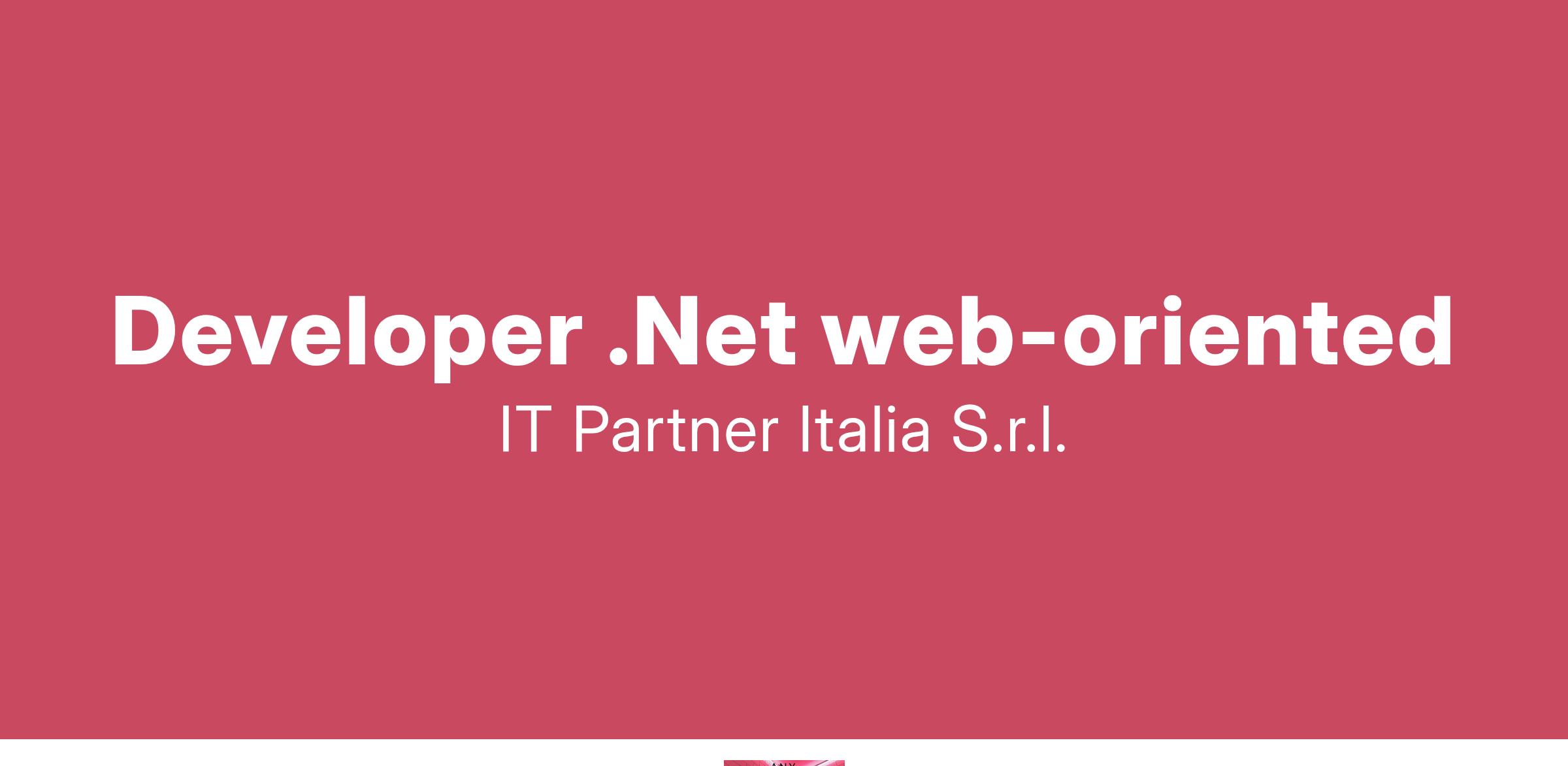 Competenze richieste: IT Partner Italia ricerca candidati con il seguente profilo professionale: .Net Developer . Siamo alla ricerca di una risorsa con almeno 3 anni di esperienza in sviluppo .net che abbia i seguenti requisiti: - Conoscenza di C#, T-SQL e Xaml - Conoscenza della programmazione ad oggetti, pattern MVVM - Creazione crud API Rest - Entity framework Core - Dependency injection - Programmazione asincrona Si prega di inviare il CV dettagliato in formato europeo all'indirizzo indicando il codice posizione 2025-009-RM-NET ed autorizzando il trattamento dei dati personali ai sensi del D. Lgs. 196/2003. L'offerta è rivolta a candidati di entrambi i sessi nel rispetto delle norme sulle parità di trattamento in materia di occupazione e di condizioni di lavoro (D.Lgs. 216/03).