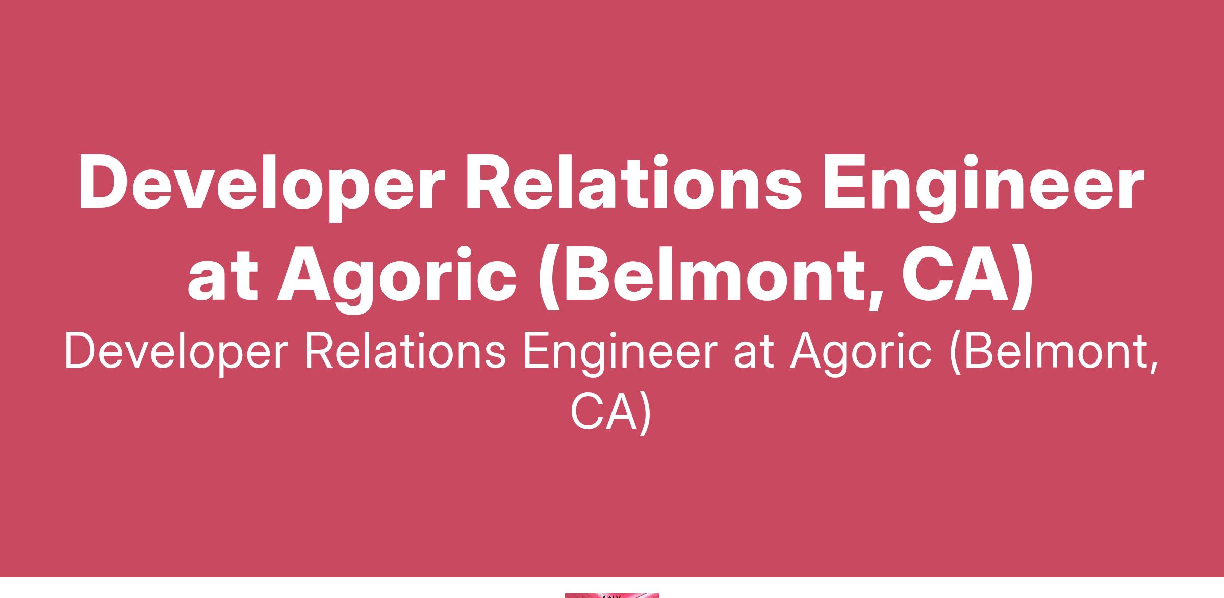 Developer Relations Engineer at Agoric (Belmont, CA)
