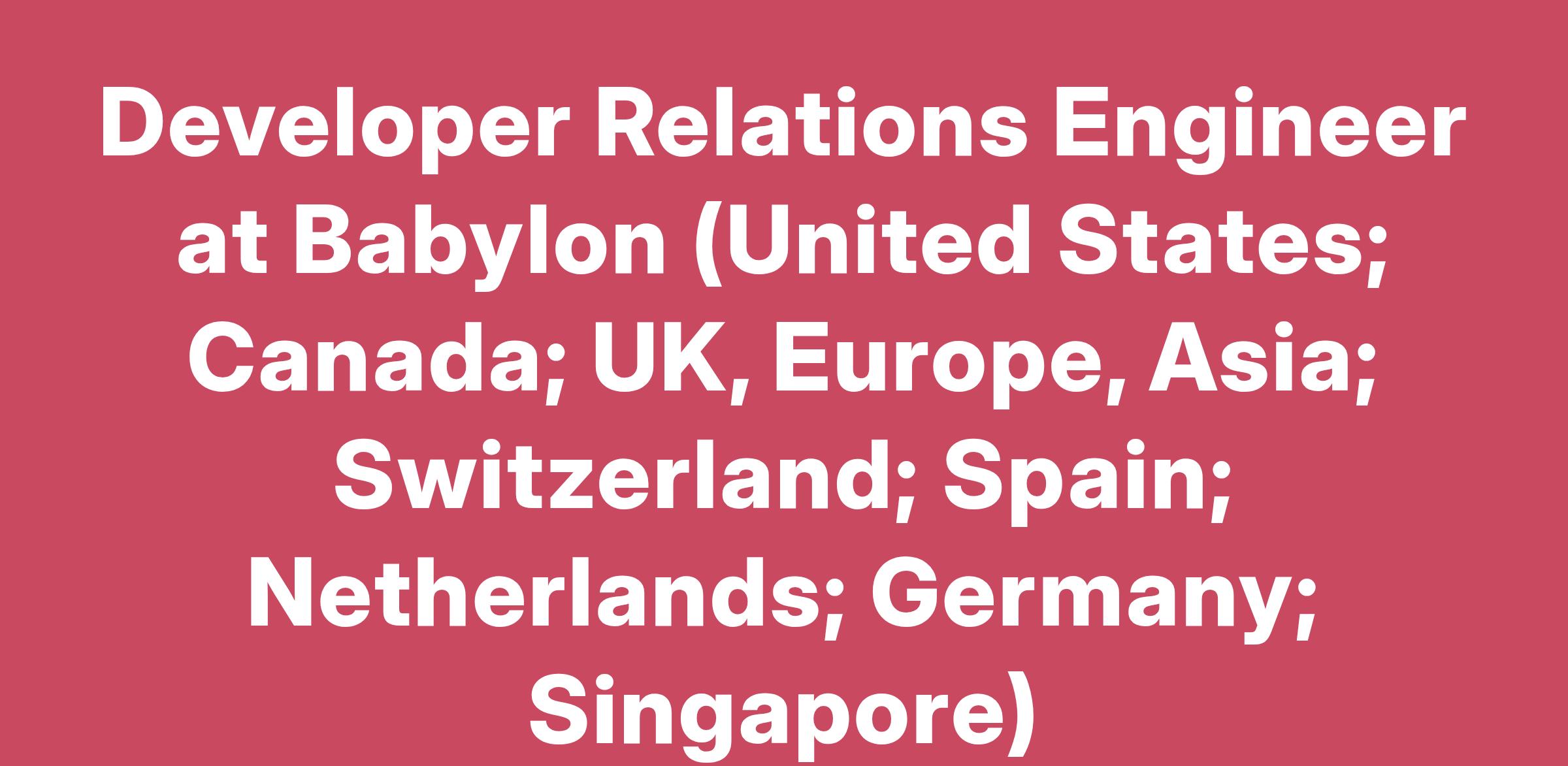 Developer Relations Engineer at Babylon (United States; Canada; UK, Europe, Asia; Switzerland; Spain; Netherlands; Germany; Singapore)