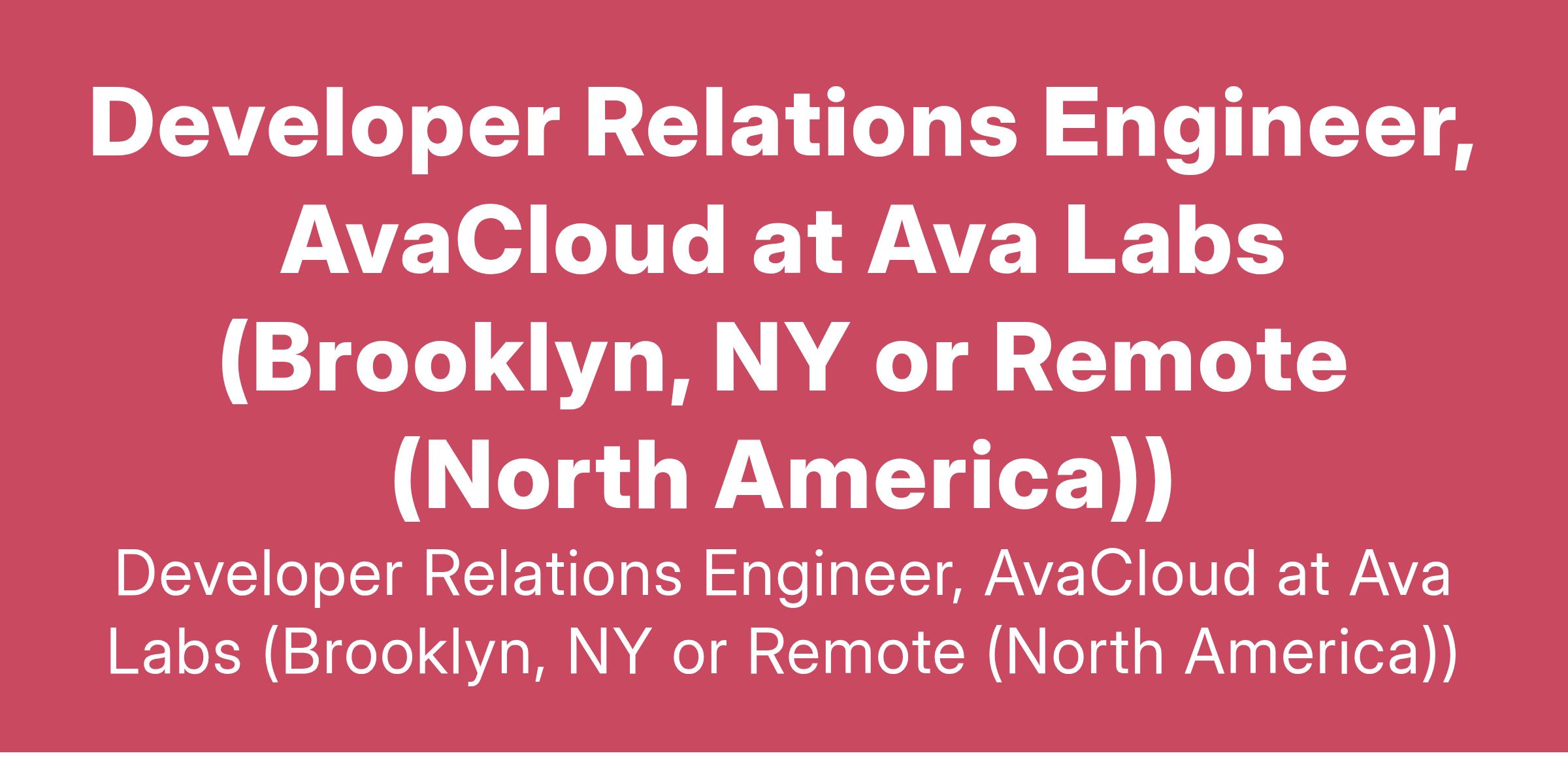 Developer Relations Engineer, AvaCloud at Ava Labs (Brooklyn, NY or Remote (North America))