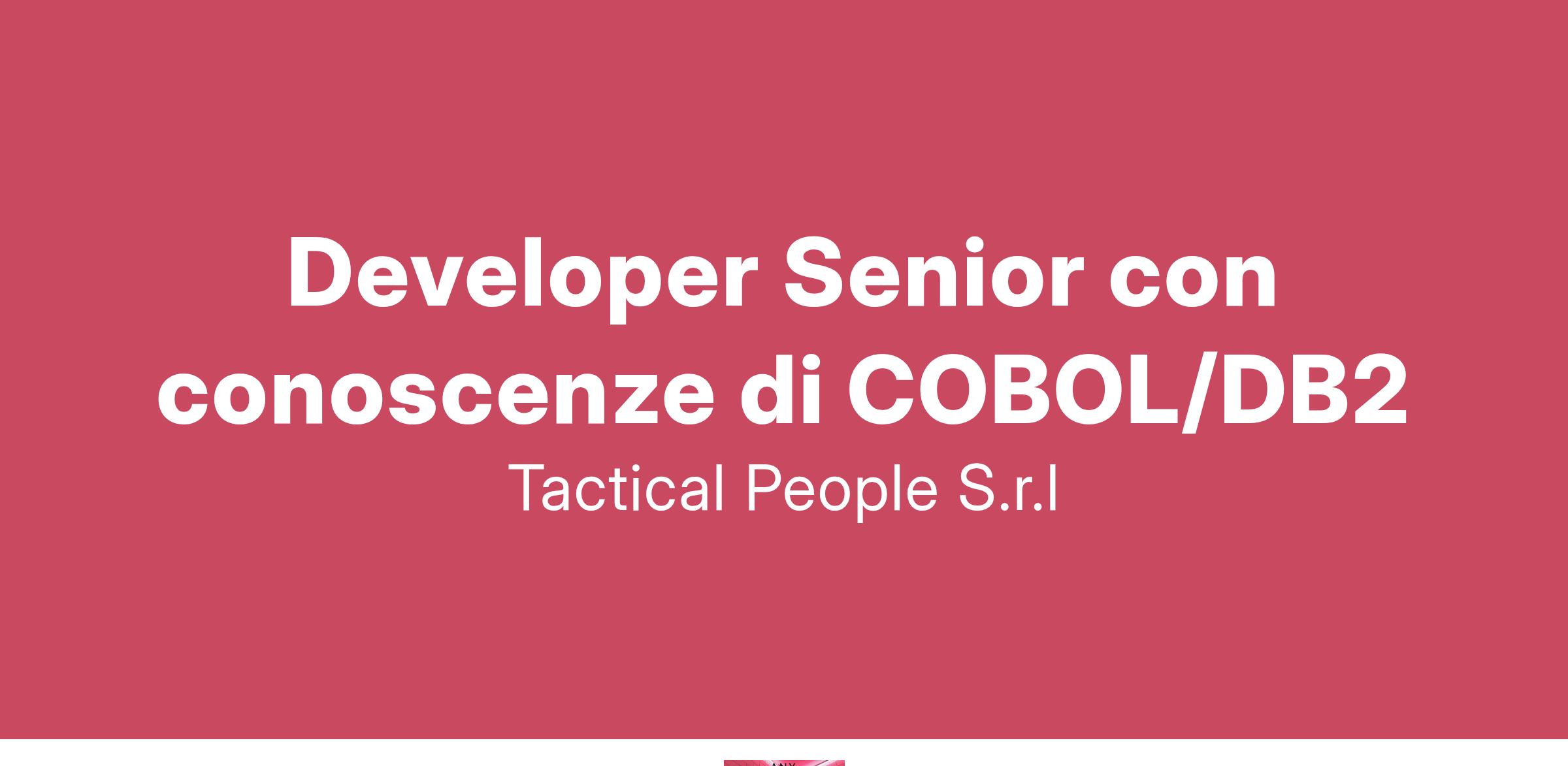 Unisciti a TACTICAL PEOPLE: Innovazione, Persone e Crescita nel Cuore della Digital Transformation Da oltre 20 anni, TACTICAL PEOPLE si posiziona come leader nel mercato ICT, guidando con passione e competenza i nostri clienti di medie e grandi dimensioni attraverso il dinamico percorso della digital transformation. La nostra mission è chiara: non solo abbracciare il cambiamento tecnologico, ma guidarlo, creando soluzioni all'avanguardia che plasmino il futuro digitale. In TACTICAL PEOPLE, crediamo fortemente nel mettere le persone al centro di ogni nostra iniziativa. Le persone sono il cuore pulsante della nostra azienda; il loro benessere, la loro crescita e il loro sviluppo sono la nostra priorità. Ci impegniamo a condividere le strategie aziendali con trasparenza e a fornire formazione e supporto a ogni livello, garantendo che ogni membro del team sia equipaggiato per eccellere e innovare. Stiamo cercando individui che condividano la nostra visione, che siano guidati dalla passione per la tecnologia e che desiderino essere protagonisti nella costruzione di un futuro digitale più luminoso. Se sei pronto a far parte di una squadra che valorizza il talento, incoraggia la crescita personale e professionale e lavora in prima linea nel settore della digital transformation, TACTICAL PEOPLE è il posto giusto per te. Posizione Aperta: Developer Senior con conoscenze di COBOL/DB2 Sede: Remoto Descrizione del Ruolo: il candidato ideale deve avere almeno 5 anni di esperienza nello sviluppo in COBOL/DB2. Cosa offriamo: Inserimento immediato in una Tech Community giovane e dinamica. TACTICAL LEARNING HUB, con corsi di aggiornamento e formazione. Il presente annuncio è rivolto ad entrambi i sessi, ai sensi delle leggi 903/77 e 125/91, e a persone di tutte le età e tutte le nazionalità, ai sensi dei decreti legislativi 215/03 e 216/03. I curricula dovranno pervenire completi di dicitura che autorizza il trattamento dei propri dati: “Si autorizza al trattamento dei dati personali ai sensi del D. Lgs. 196/2003.
