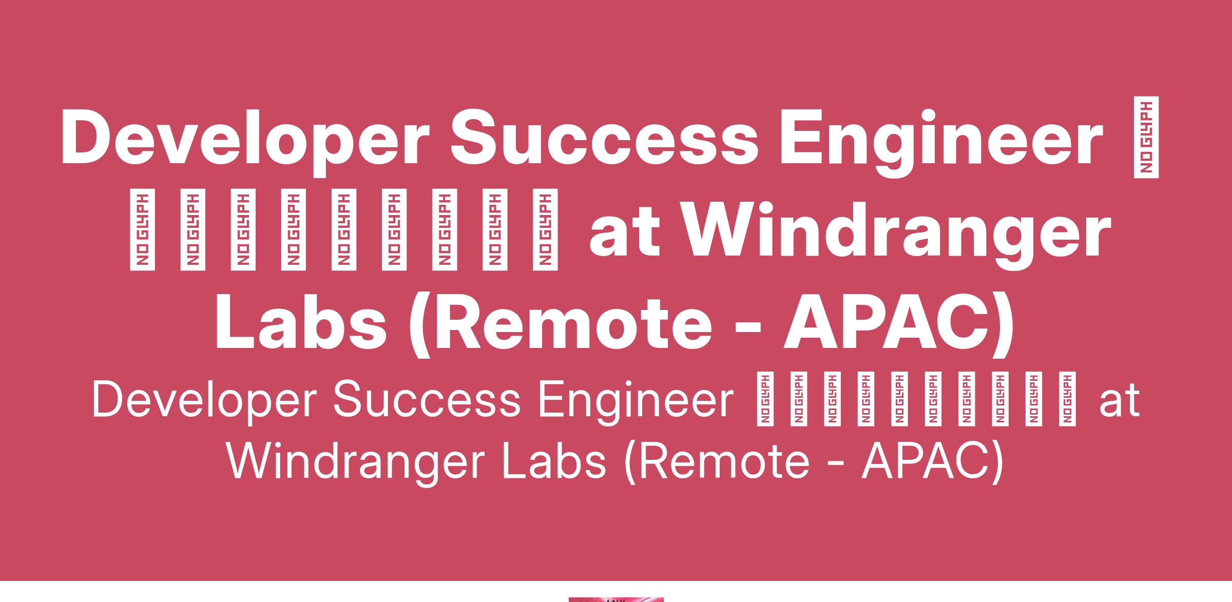 Developer Success Engineer 区块链技术支持工程师 at Windranger Labs (Remote - APAC)