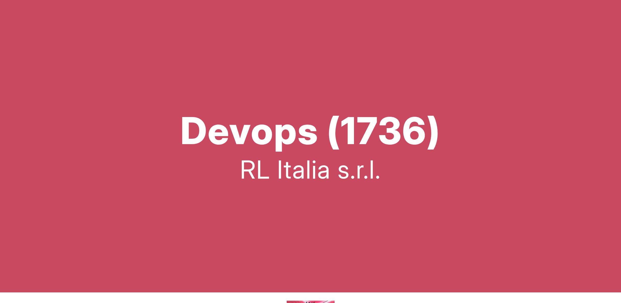 RL Italia s.r.l., azienda di Servizi IT con sede a Roma e Milano, operante su tutto il territorio nazionale, ricerca un/una Devops Sede: Roma (2/3 gg on-site e 2/3 gg in remoto).