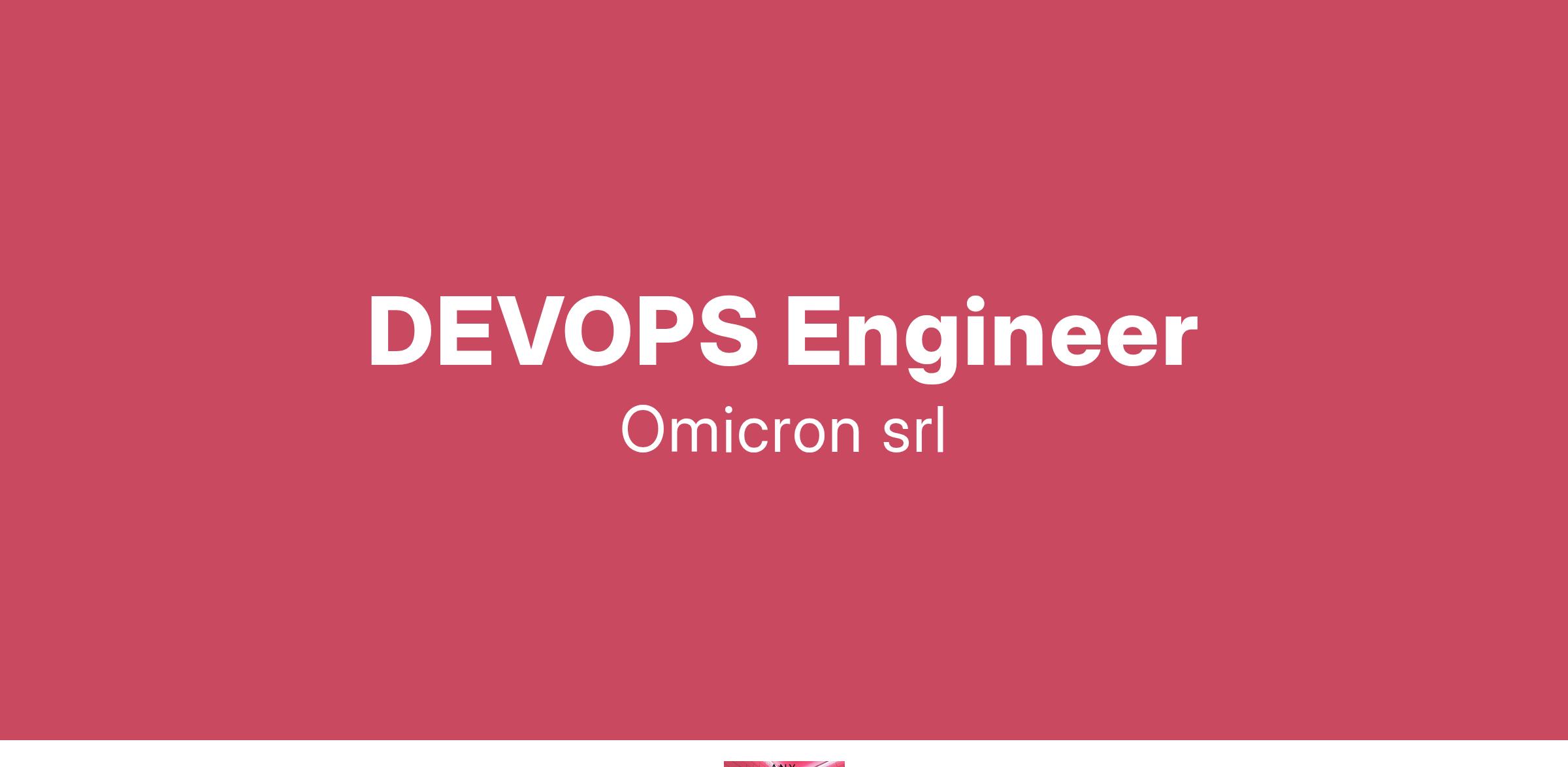 Omicron S.r.l., società in forte espansione nell’area della consulenza informatica, ricerca: 3 DEVOPS Engineer (remoto) Si offre: •Contratto a tempo determinato di 12 mesi con possibilità di rinnovo. •Retribuzione fissa commisurata alle effettive competenze maturate. Sede di lavoro: remoto Gl’interessati possono candidarsi inviando il CV all'indirizzo mail: L’offerta si intende rivolta a candidati ambosessi, nel rispetto del D.Lgs. n. 198/2006 e ss.mm.ii. e dei Decreti Legislativi n. 215 e n. 216 del 2003 sulle parità di trattamento. I candidati sono invitati a leggere l’informativa privacy ai sensi degli artt. 13 e 14 del Reg. EU 679/2016.