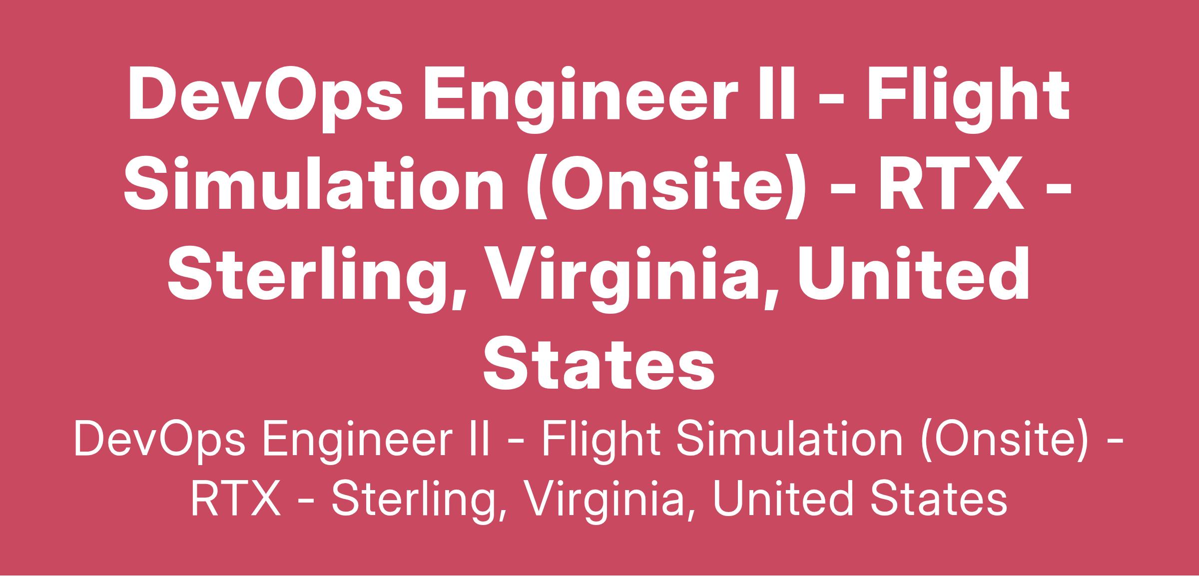 DevOps Engineer II - Flight Simulation (Onsite)