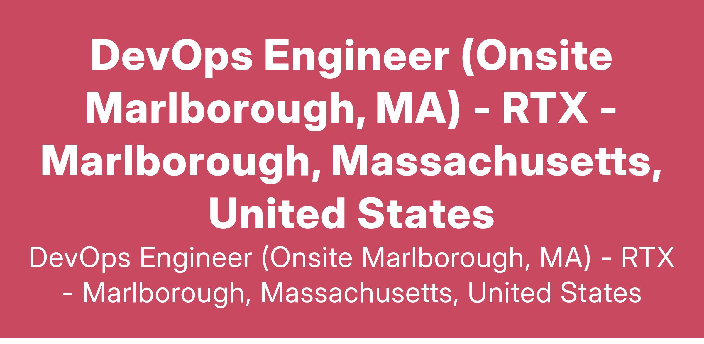This role is onsite based on Marlborough, MA.