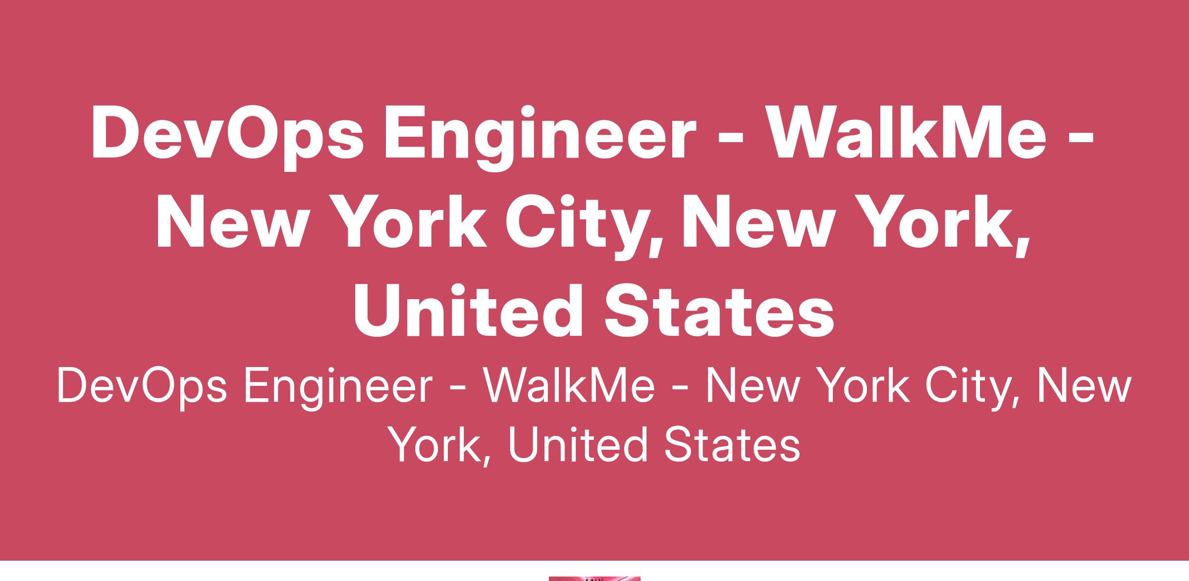 We are looking for a Devops Engineer to join our amazing Cloud Engineering team.We are developing WalkMe’s revolutionary runtime engine and transforming the online experience for hundreds of millions of users.