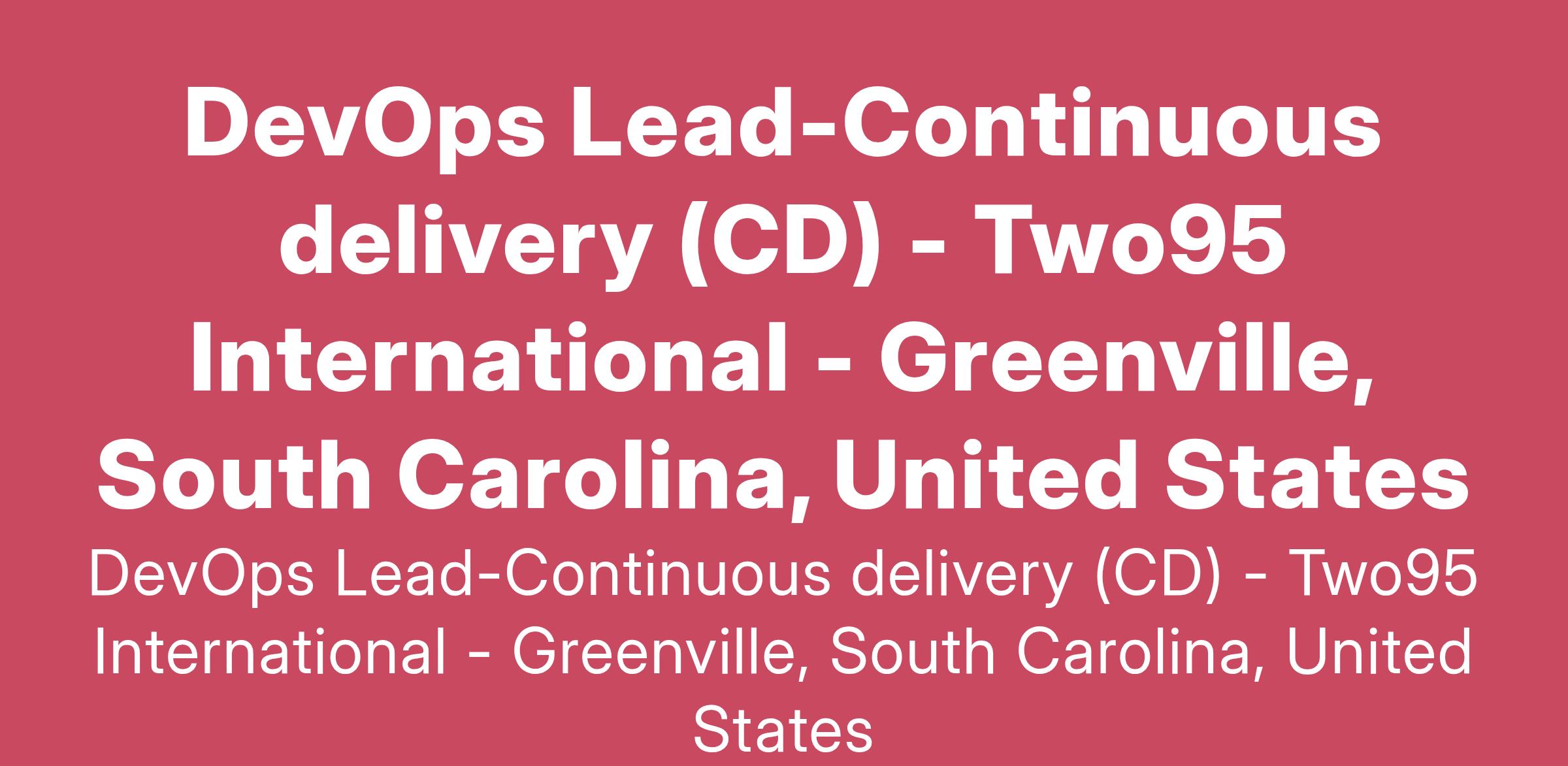 Title: DevOps Lead-Continuous delivery (CD)