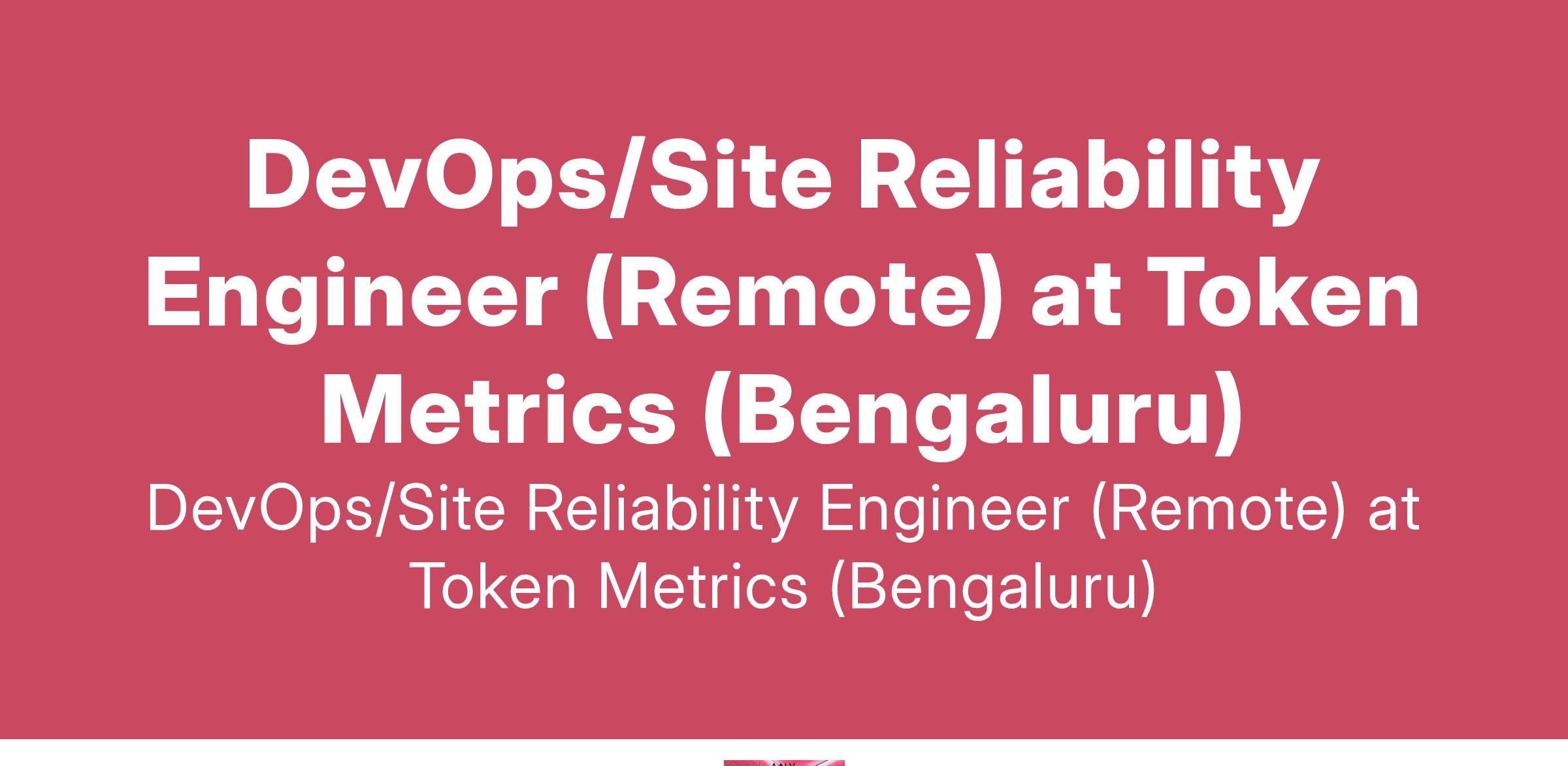 DevOps/Site Reliability Engineer (Remote) at Token Metrics (Bengaluru)