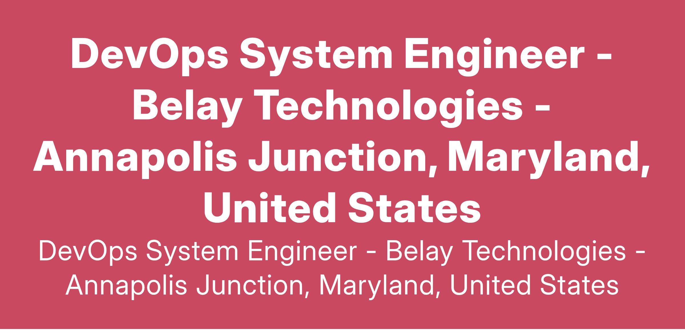 Belay Technologies is a certified Service-Disabled Veteran-Owned Small Business located in Columbia, Maryland (Baltimore/Washington/Ft. Meade area). Belay Technologies specializes in systems automation and full stack development. Belay Technologies provides leading technology and engineering solutions to the DoD, as well as state-of-the-art commercial products. We hire fully cleared software engineers, web designers, test engineers, systems engineers, systems administrators, database engineers and other tech services. We are an Equal Opportunity Employer. Employment decisions are made without regard to race, color, religion, national origin, gender, sexual orientation, gender identity, age, physical or mental disability, genetic factors, military/veteran status or other characteristics protected by law.