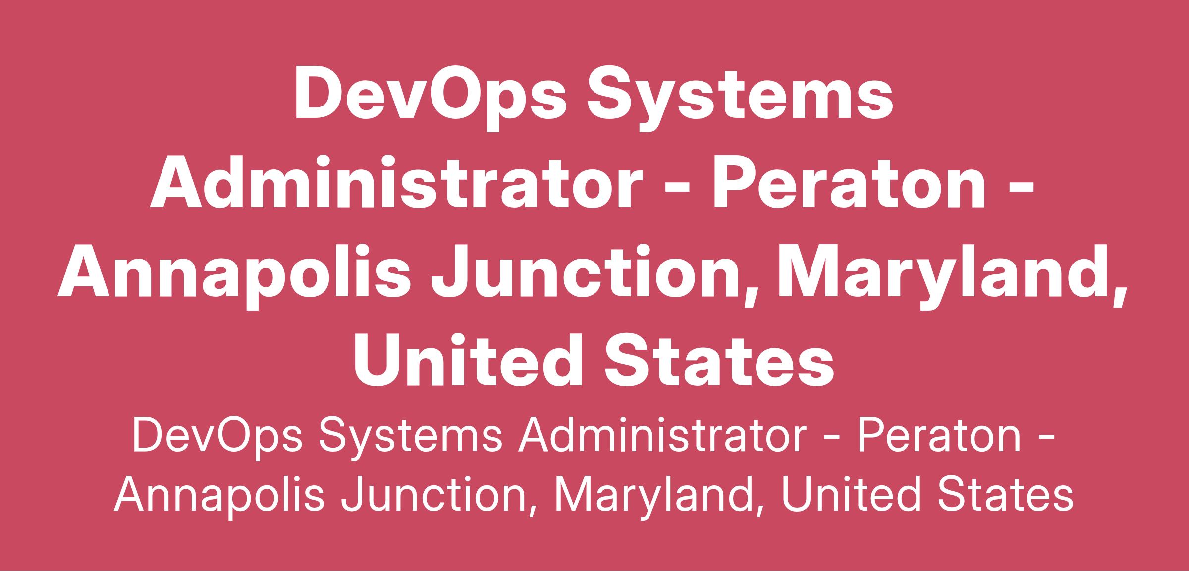 Are you ready to make a difference as a DevOps Systems Administrator? Apply today to join Peraton and help drive mission-critical solutions.