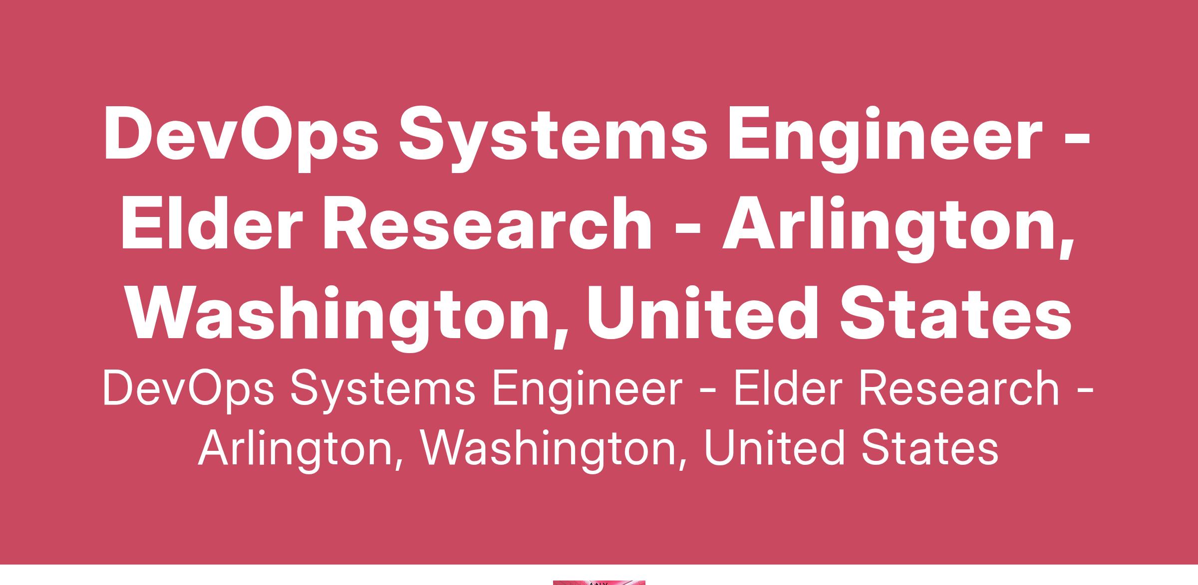 DevOps Systems Engineer - Elder Research - Arlington, Washington, United States