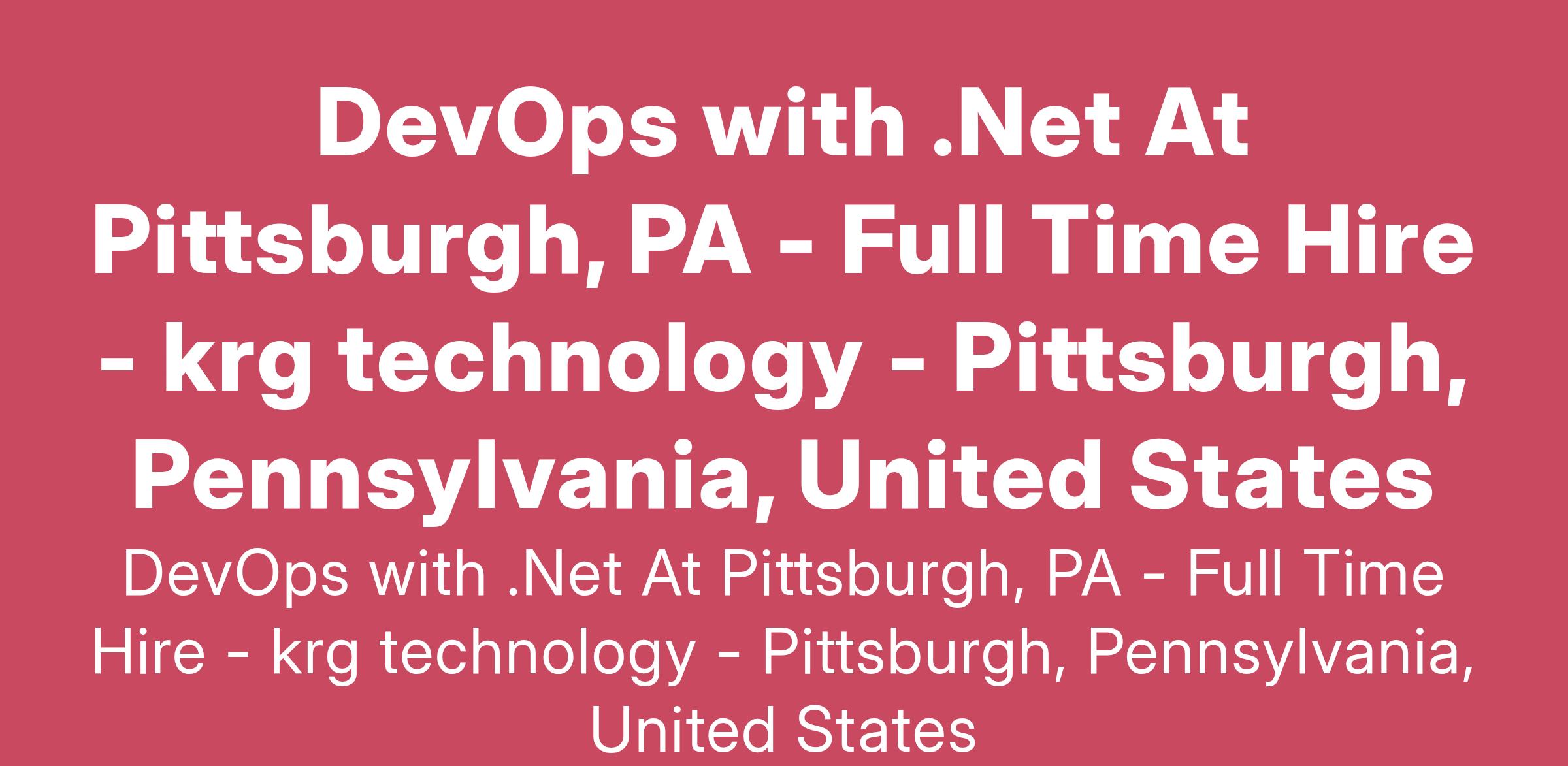 This is LALITHA from KRG TECHNOLOGIES: We are looking for DevOps with .Net at Pittsburgh, PA for the below mentioned job description. Kindly forward me your resume, rate and contact details for further process.
