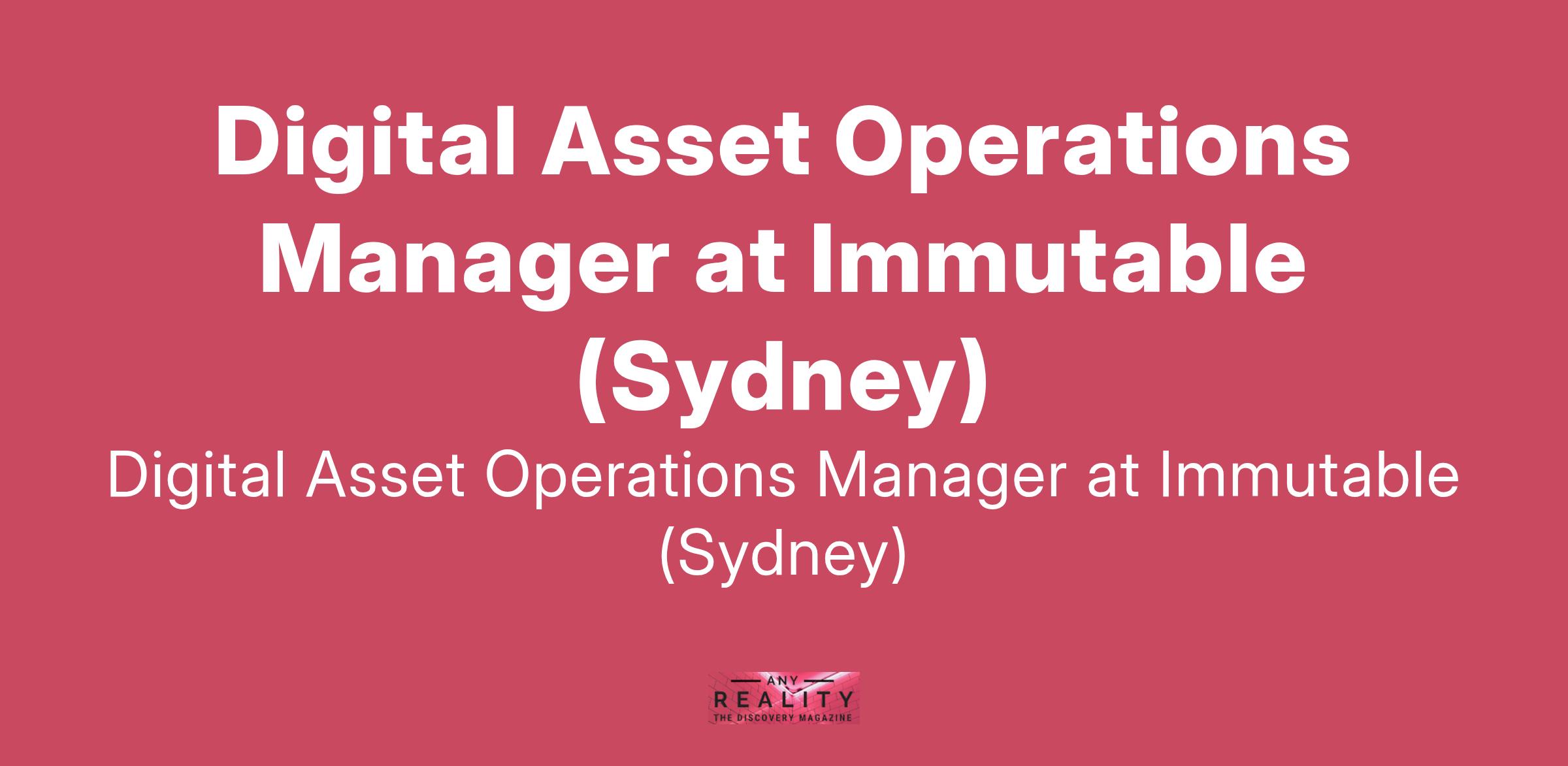 Digital Asset Operations Manager at Immutable (Sydney)