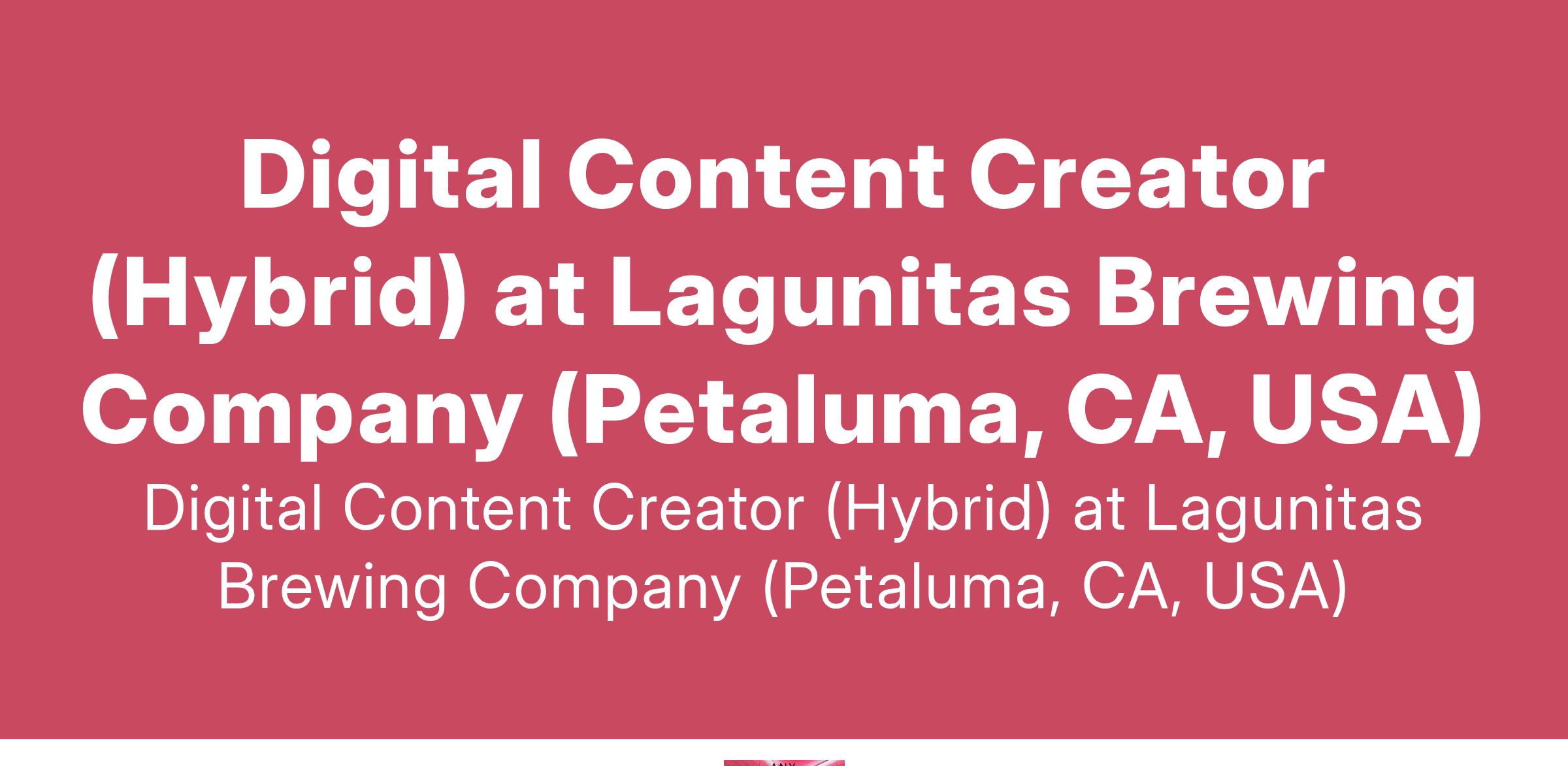 Digital Content Creator (Hybrid) at Lagunitas Brewing Company (Petaluma, CA, USA)