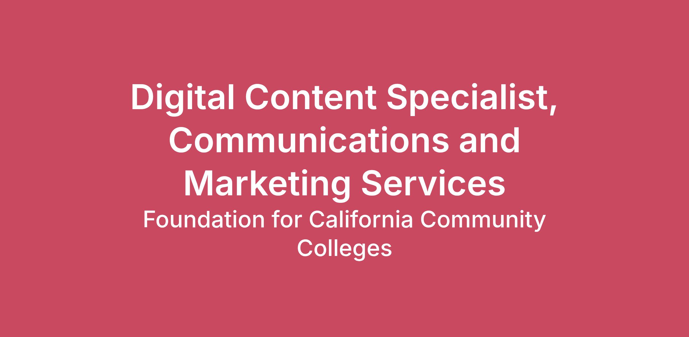 Digital Content Specialist, Communications and Marketing Services100% Remote within California, Must reside in CaliforniaWe are seeking a Digital Content Specialist to join the Foundation in its mission of benefitting, supporting, and enhancing the California Community Colleges—the largest and most diverse system of higher education in the nation. The Foundation for California Community Colleges is on a mission to double its impact in the next 10 years. We are a group of relentless optimists and innovators in education, working collaboratively with public and private partners to help improve the student experience and expand pathways to economic and social mobility in communities across California.What You’ll DoThe Digital Content Specialist is a content strategy and UX writing professional on the Creative Team within the Communications and Marketing Services Unit. This role plans, writes, and optimizes user-centered content for FoundationCCC’s website, digital experiences, program, event and website projects, ensuring content is clear, accessible, and aligned to project goals and user needs. The Digital Content Specialist strengthens digital performance by shaping information architecture and taxonomy, improving user journeys, and applying SEO and analytics to increase discoverability and eectiveness across FoundationCCC’s 70+ programs and partners.This is not a marketing copywriter-only role. It is a digital content role for someone who understands how modern web experiences are built and maintained and can serve as an informed partner throughout discovery, design, and implementation. The Web Content Specialist translates complex program information into plain-language, action-oriented content; collaborates closely with designers and Tech Solutions during builds; and helps establish governance practices that keep content accurate, consistent, and measurable over time.Write and edit user-centered web content, including page copy, navigation labels, microcopy, forms, help text, and calls to action that support clear user action and understanding.Partner with designers to ensure content and UX/UI work together, including content hierarchy, layout t, and scannability.Develop and apply content strategies that support intuitive user journeys across large, portfolio-based sites and program ecosystems.Recommend and rene information architecture, navigation structures, page templates, and taxonomy to improve ndability and consistency.Conduct keyword research and implement SEO best practices across page titles, headings, metadata, and on-page content to support discoverability.Use analytics and performance signals to improve content eectiveness over time, recommending updates that strengthen engagement and task completion.Collaborate with Project Marketing Specialists and program teams to clarify goals, audiences, and content requirements, and to incorporate stakeholder feedback eciently.Attributes for SuccessBachelor’s degree in Communications, Marketing, English, UX, web-related eld, or equivalent practical experience.3-5 years of experience writing and editing digital content for websites or digital products, with demonstrated UX writing or content strategy responsibilities.Experience improving content outcomes through information architecture/taxonomy, content audits, SEO best practices, or analytics-informed creative decisions.Familiarity with analytics platforms (GA4 preferred) and dashboard/reporting tools.Experience supporting WordPress-based sites and/or content-managed environments.Strong UX writing and web content fundamentals, including plain language, content hierarchy, scannability, and writing for user action.Ability to develop content strategies that support information architecture, taxonomy, and streamlined user journeys across complex portfolios.Portfolio of published digital content (web pages, UX writing samples, content strategy artifacts, or comparable work).We’re recruiting for mission-driven, passionate, equity-minded individuals with a strong desire to impact and change people’s lives for the betterOur work holds great weight and responsibility, and the opportunity to impact the lives of millionsInnovation, creativity, collaboration, and entrepreneurship are encouraged as employees work to achieve organizational goalsFoundationCCC blends the impact of a non-profit, the culture of an entrepreneurial start-up, and the scale of a state agencyTeam members are hired for their expertise in niche areas across our areas of impact and higher education overall, and for their knowledge of business, philanthropy, technology, communications, and moreWe have a commitment to professional development and an emphasis on shared leadership, to ensure growth for employees and the organization overallWhat we OfferFoundationCCC is fully committed to a “remote-first” philosophy, and recruits and hires talent across the state in fully remote positions, where virtual work is possible. Our headquarters are located in Downtown Sacramento, just blocks from California’s State Capitol.BenefitsCompetitive compensation, generous PTO, holidaysMedical, dental, and vision plans, Flexible Spending Accounts, and Health Savings Accounts (HSA), Employee Assistance Program (EAP), and Wellness offeringsCalPERS retirement program and optional 403(b) and 457 Retirement plansTuition reimbursementPublic Service Loan Forgiveness certified employerIf you have any questions, please email us at jobs@foundationccc.org.Budgeted Annual Salary Pay Range:$70,000.00 - $75,000.00Final salary and rates are based on education, experience, skills relevant to the role, and internal equity.