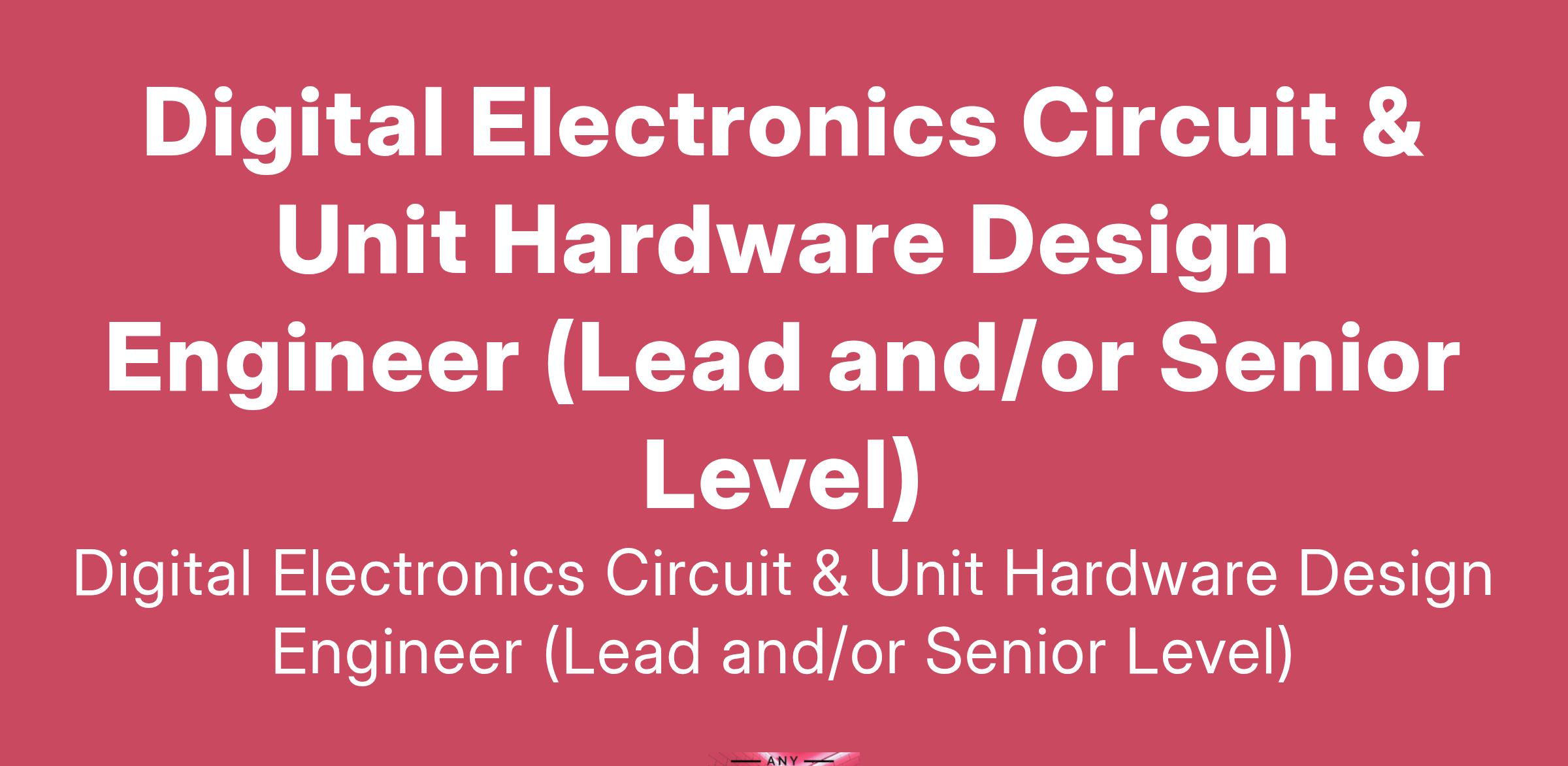 Digital Electronics Circuit & Unit Hardware Design Engineer (Lead and/or Senior Level)