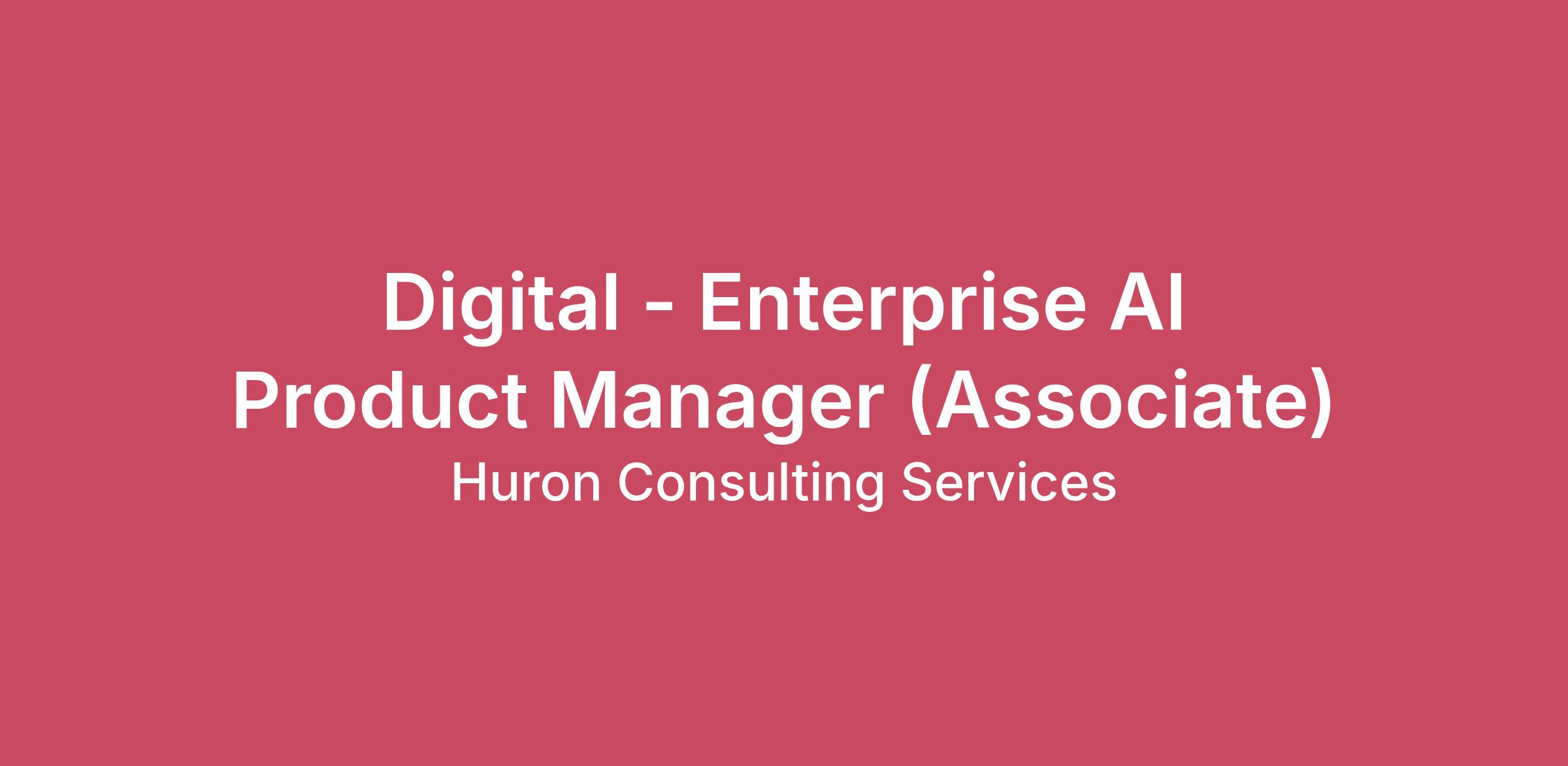 Huron is a global consultancy that collaborates with clients to drive strategic growth, ignite innovation and navigate constant change. Through a combination of strategy, expertise and creativity, we help clients accelerate operational, digital and cultural transformation, enabling the change they need to own their future. Join our team as the expert you are now and create your future.Associate Product Managers on the Huron +AI team are execution-focused contributors who help build, refine, and scale Huron's portfolio of AI solutions. This is an internal product role — you will work alongside senior product managers, Huron industry and practice teams, and AI transformation practitioners to develop capabilities, shape product direction, and support go-to-market readiness. It is designed for early-career professionals who want to grow at the intersection of enterprise AI and product management.Role and responsibilities• Contribute to AI product development across the lifecycle — requirements definition, user story writing, backlog management, release coordination, and continuous improvement• Support product discovery activities including stakeholder interviews across industry and practice teams, feedback synthesis, and industry trend monitoring• Partner with AI transformation teams to translate delivery insights and field learnings into product inputs, feature refinements, and roadmap considerations• Assist in UX and prototyping work — wireframes, personas, user journeys, and usability inputs — in collaboration with design and engineering counterparts• Contribute to go-to-market preparation: positioning inputs, feature documentation, internal communications, and enablement materials for practice and industry teams• Support build vs. buy vs. partner analysis and pricing model inputs for solutions in development• Maintain product artifacts including roadmaps, requirement documentation, and sprint tracking under senior direction• Develop working familiarity with enterprise AI architecture and infrastructure sufficient to collaborate effectively with technical teams• Help grow AI fluency across Huron by contributing to internal knowledge sharing, onboarding content, and practice capability materials• Support definition and tracking of product value and success metrics — partner with senior product managers to help establish clear KPIs and contribute to measuring and communicating product impact over time________________________________________Qualifications• Bachelor's degree in a related field or equivalent work experience• 2-4 years of experience in product management, consulting, or a related role with exposure to enterprise technology or software products• Demonstrated interest in or practical exposure to AI, machine learning, or generative AI applications in business contexts• Proficient in structured communication and presentation; able to prepare clear, well-organized materials with direction• Foundational understanding of product management principles: user stories, backlog prioritization, roadmap inputs, and product metrics• Comfortable working cross-functionally with engineering, design, practice, and go-to-market teams in a matrixed environment• Curiosity, learning orientation, and a bias toward tangible output over process for its own sake• Ability to articulate the impact of prior work, including contributing to defining success metrics, measuring outcomes, and connecting product or project efforts to business value________________________________________What you can expect• Hands-on contribution to real AI product development inside a growing internal practice• Close collaboration with senior product managers, industry and practice leaders, and AI transformation teams across Huron• A defined growth path toward Product Manager as you build demonstrated ownership and capability• A firm small enough to give you visibility and big enough to offer meaningful scope across industries and solution areasThe estimated base salary for this job is $105,000 - $135 ,000 USD. The range represents a good faith estimate of the range that Huron reasonably expects to pay for this job at the time of the job posting. The actual salary paid to an individual will vary based on multiple factors, including but not limited to specific skills or certifications, years of experience, market changes, and required travel. This job is also eligible to participate in Huron’s annual incentive compensation program, which reflects Huron’s pay for performance philosophy. Inclusive of annual incentive compensation opportunity, the total estimated compensation range for this job is $120,750 - $155,250 USD. The job is also eligible to participate in Huron’s benefit plans which include medical, dental and vision coverage and other wellness programs. The salary range information provided is in accordance with applicable state and local laws regarding salary transparency that are currently in effect and may be implemented in the future.Position LevelAssociateCountryUnited States of America