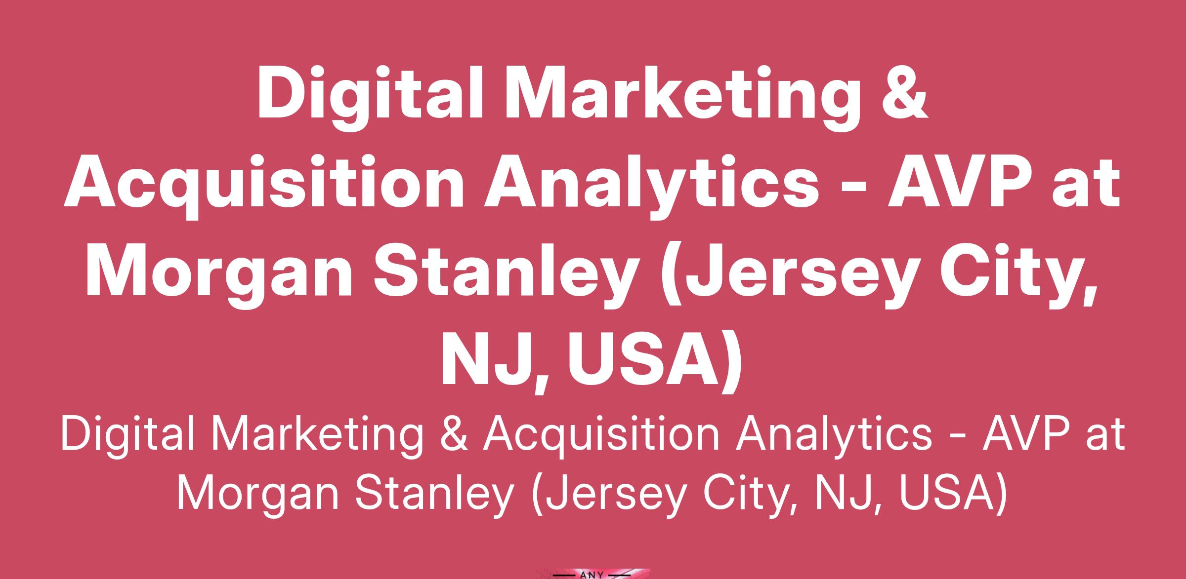 Digital Marketing & Acquisition Analytics - AVP at Morgan Stanley (Jersey City, NJ, USA)